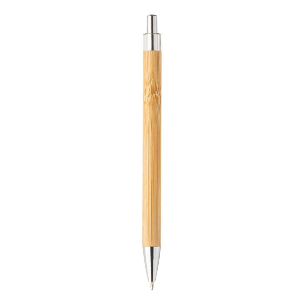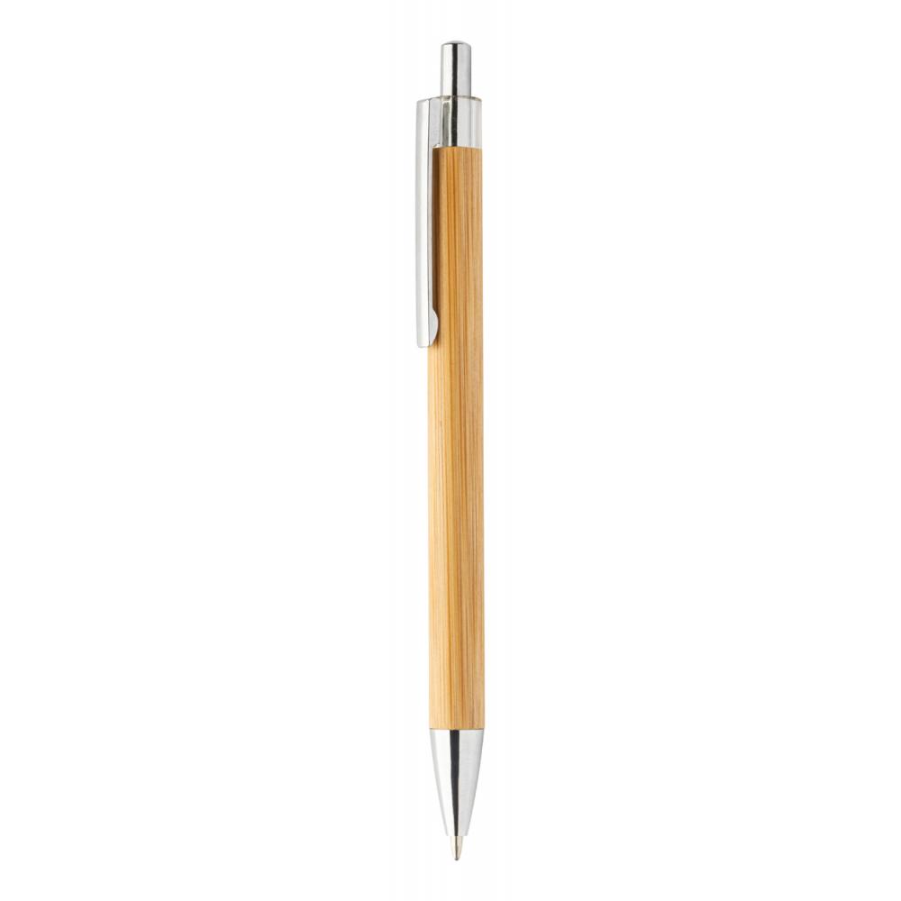 Шариковая ручка из бамбука с прозрачным верхом и хромированными деталями.