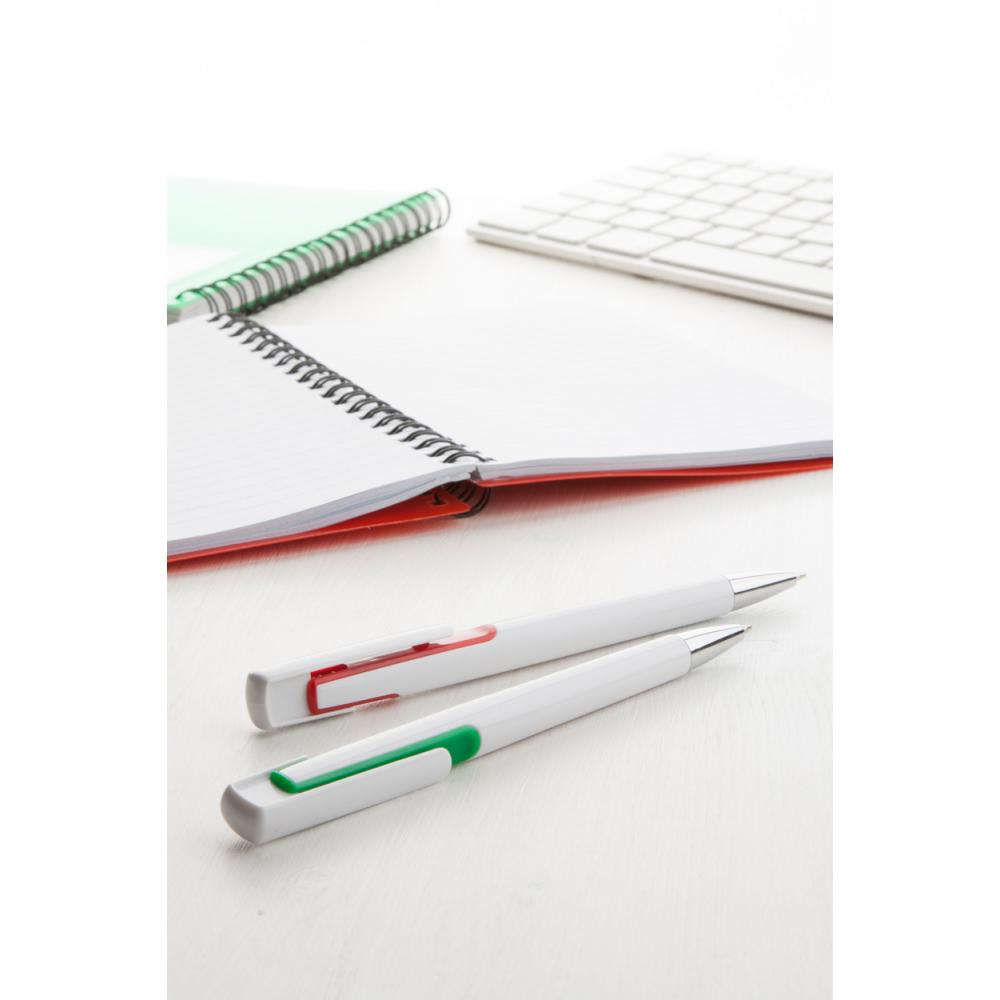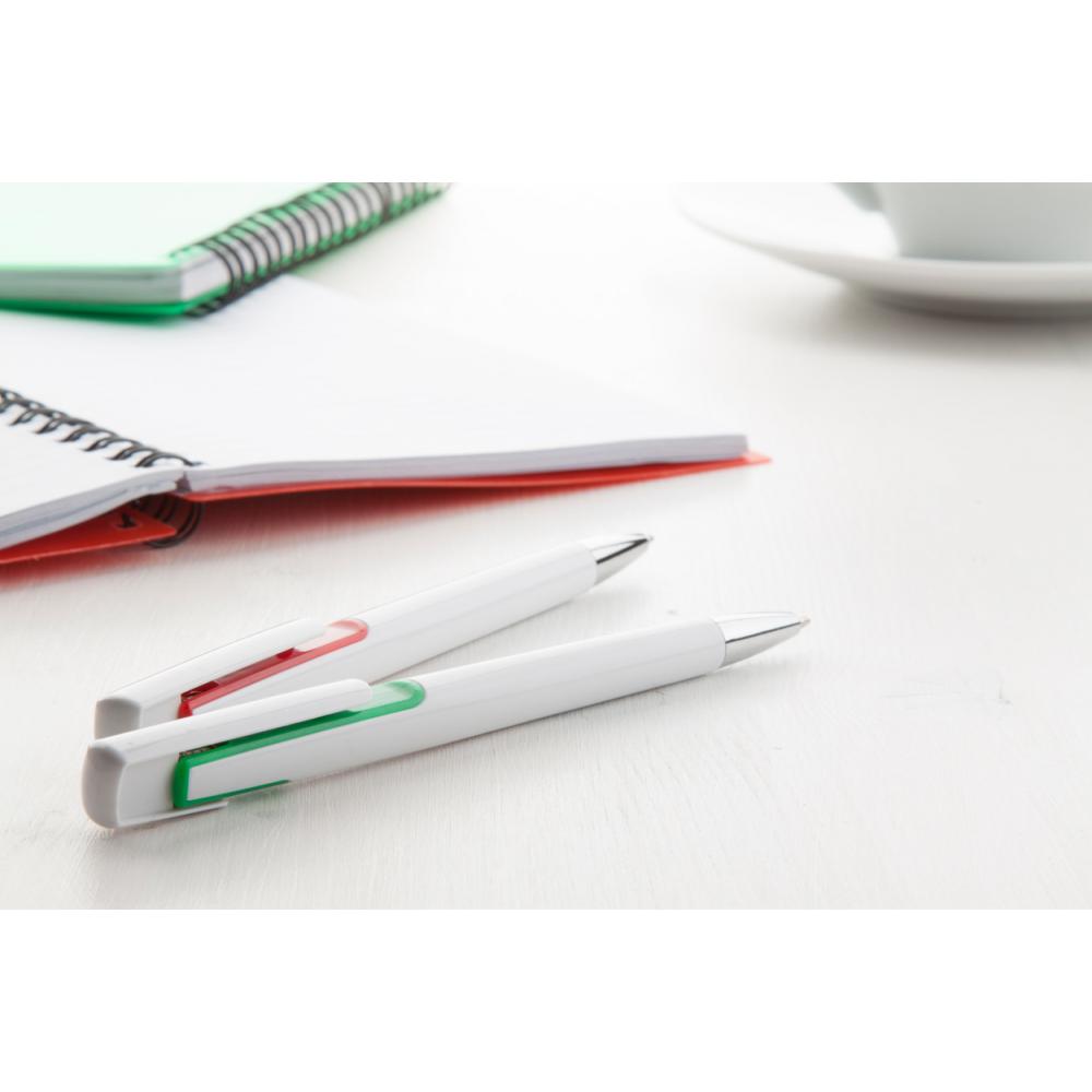 Пластиковая шариковая ручка с цветным декором и хромированным наконечником. С синим стержнем.
