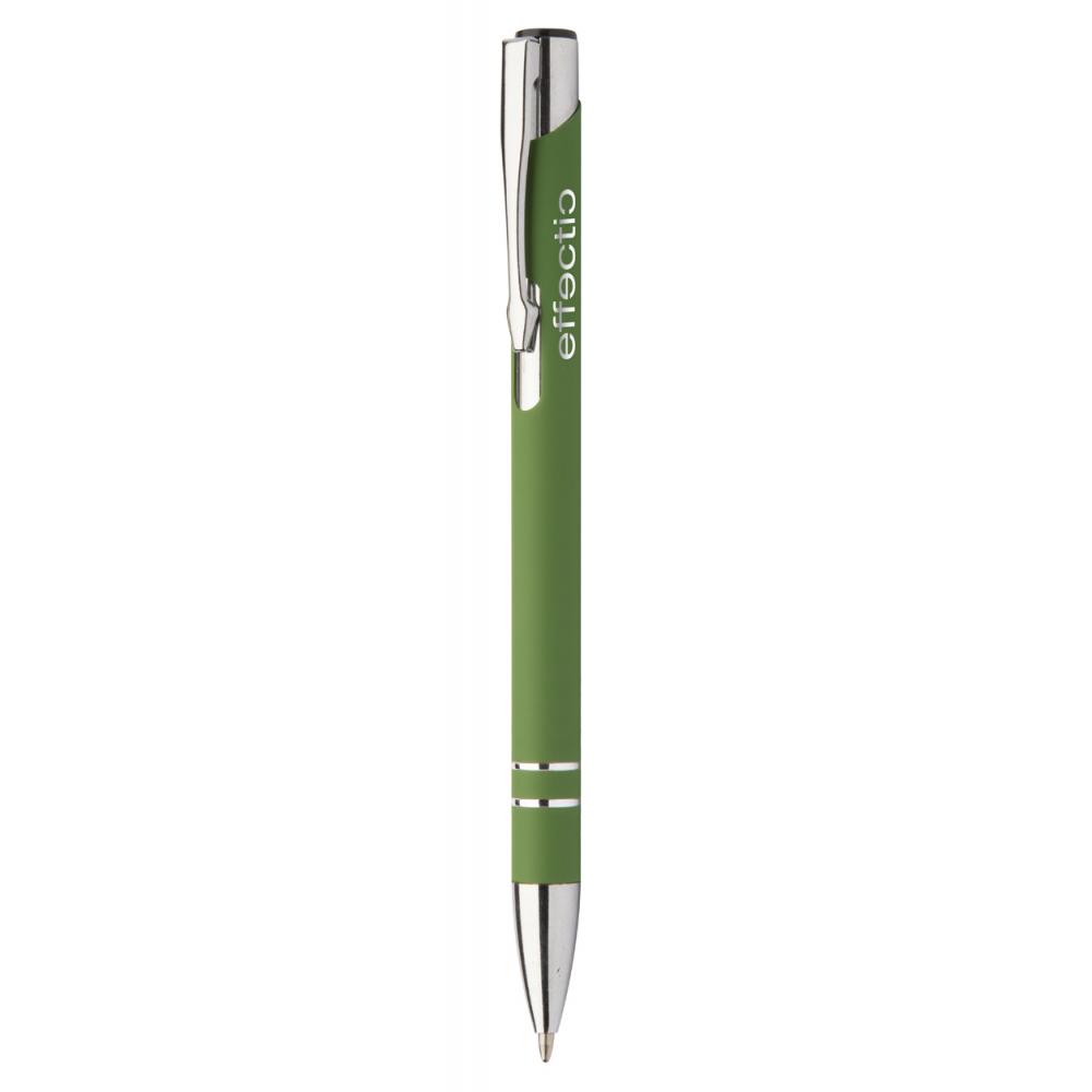 Алюминиевая шариковая ручка с прорезиненным покрытием и синим стержнем. Со специальным покрытием для зеркальной лазерной гравировки.