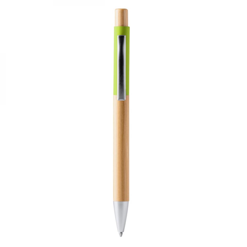 Шариковая ручка с корпусом и кнопкой из бамбука. Мягкая отделка цветом "soft-touch". Металлический наконечник и клипса. Синяя чернила.