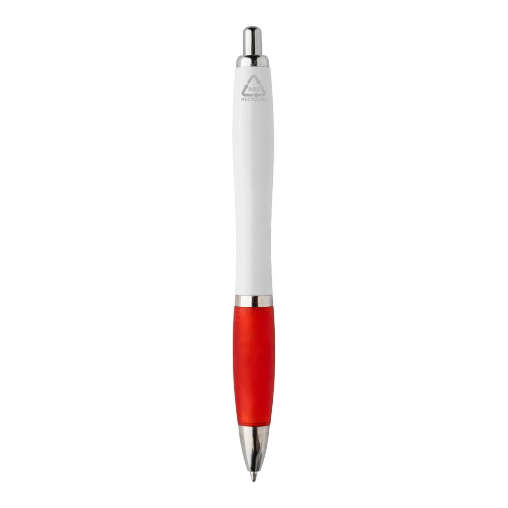 Шариковая ручка из переработанного пластика ABS с белым корпусом, цветным хватом и хромированными деталями. С синим стержнем.