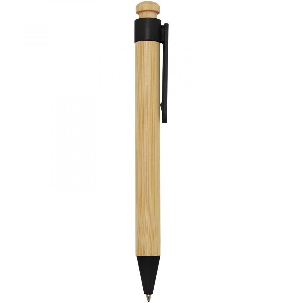 Шариковая ручка с клипом и наконечником из переработанного пластика, кнопка и корпус изготовлены из бамбука. Цвет чернил: черный. Длина письма: 1000 метров. Размер пера: 1,0 мм.
