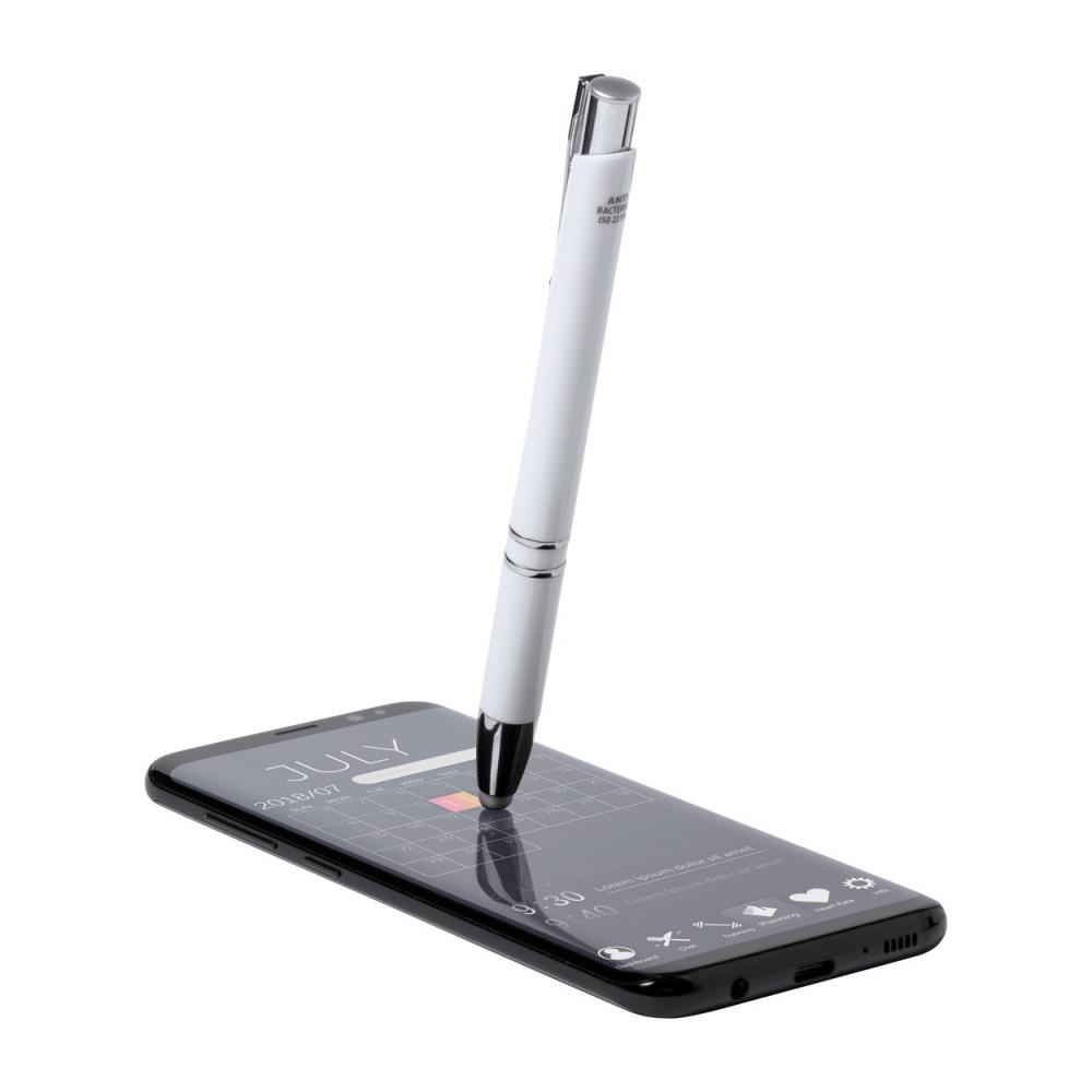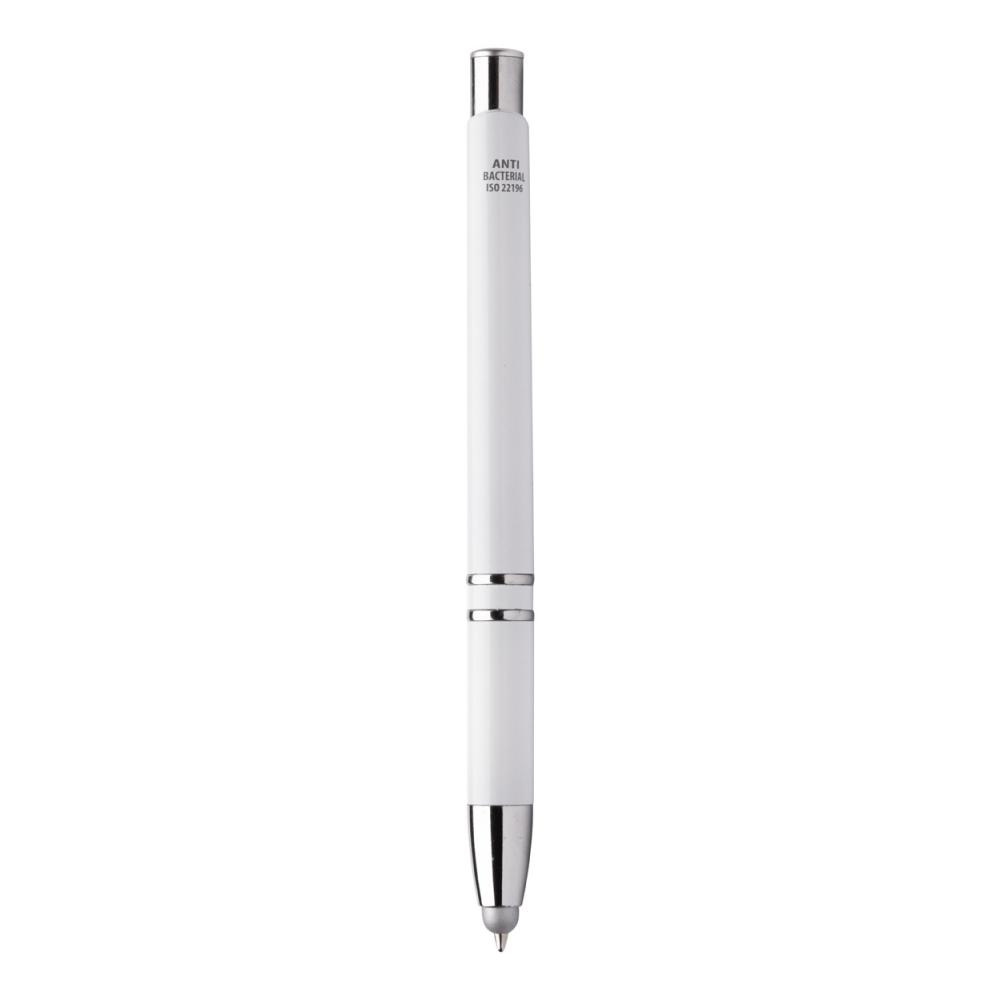 Шариковая ручка из антибактериального пластика и ручка для сенсорного экрана с синим стержнем.