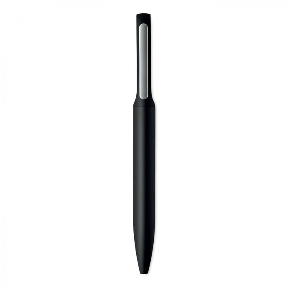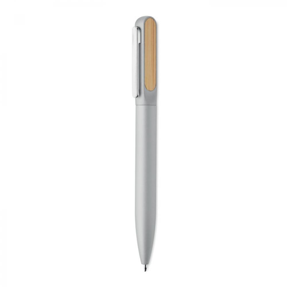 Ручка с поворотным механизмом, корпус из переработанного алюминия, поворотная часть из переработанного ABS-пластика и металлическая клипса с бамбуковой вставкой. Синяя паста.
