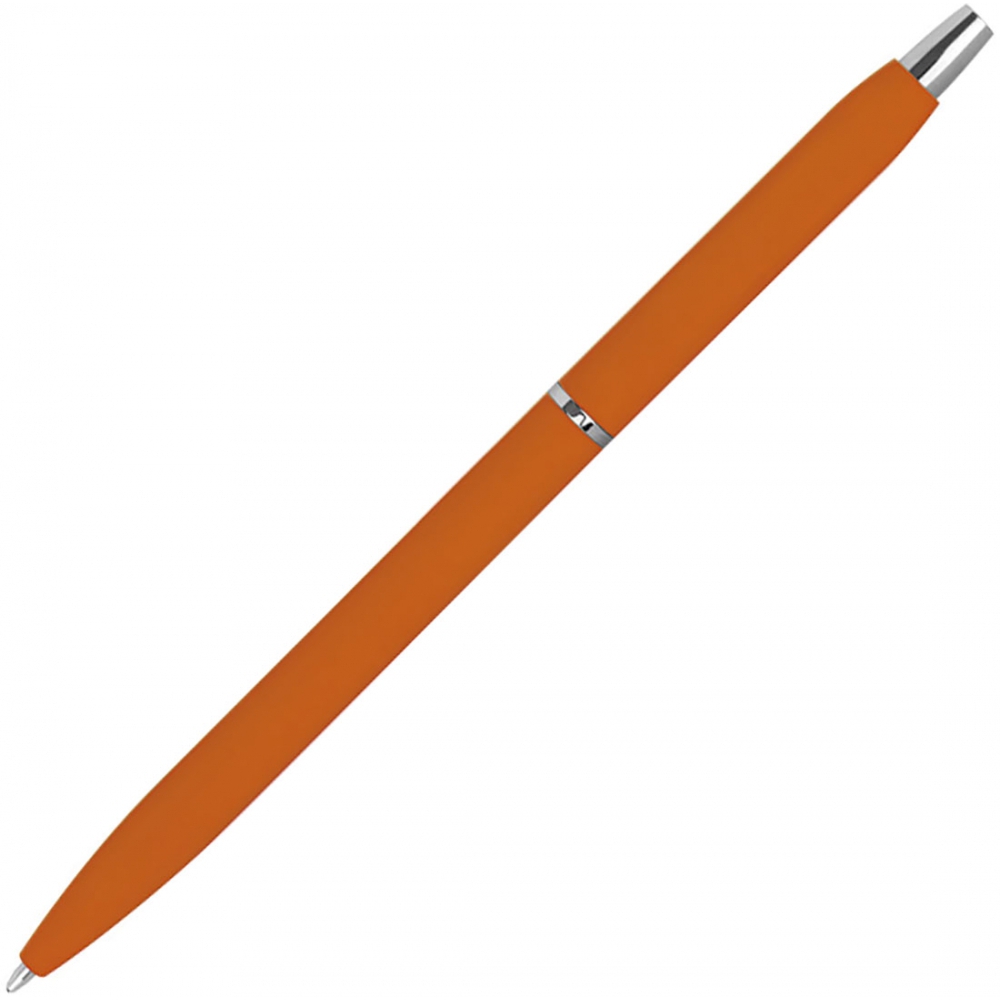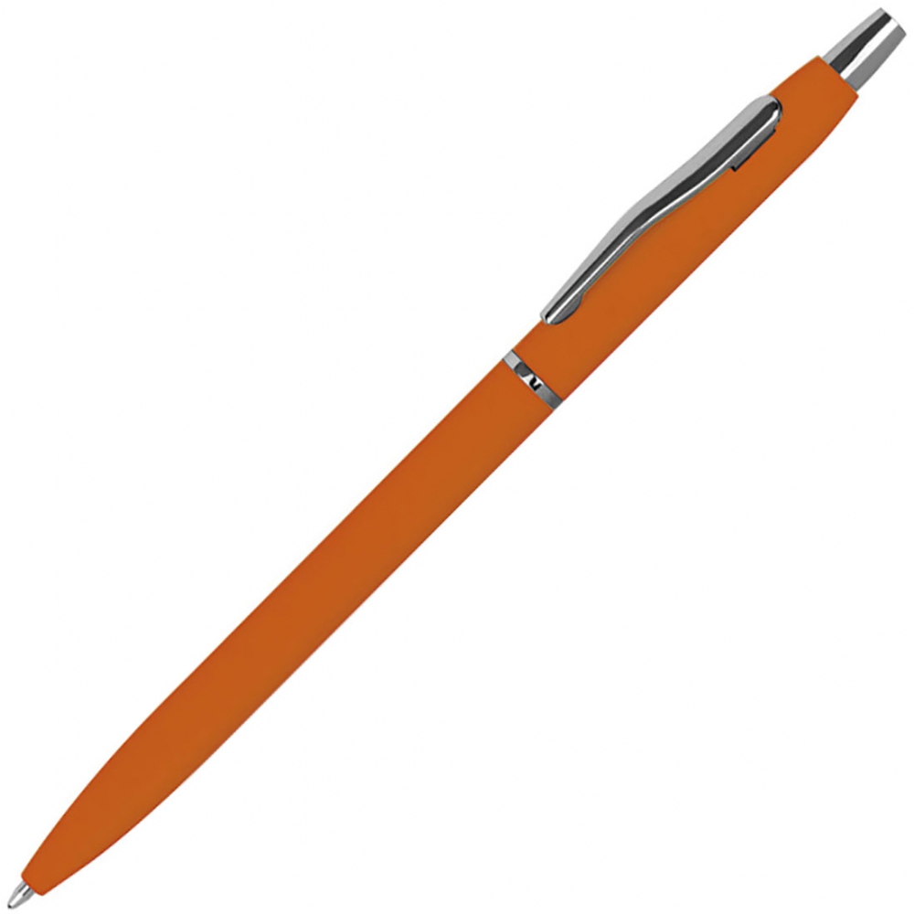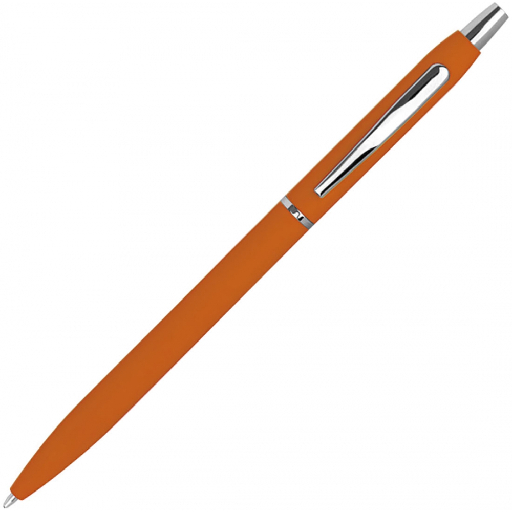 Тонкая металлическая ручка с резиновым покрытием в различных цветах, с серебристыми элементами и черной пастой. Мы нанесем ваш логотип справа от клипа.