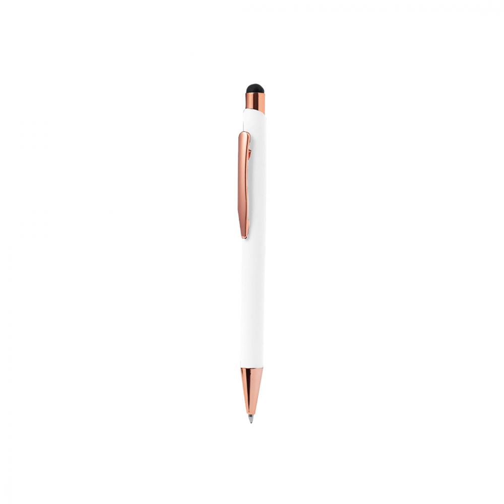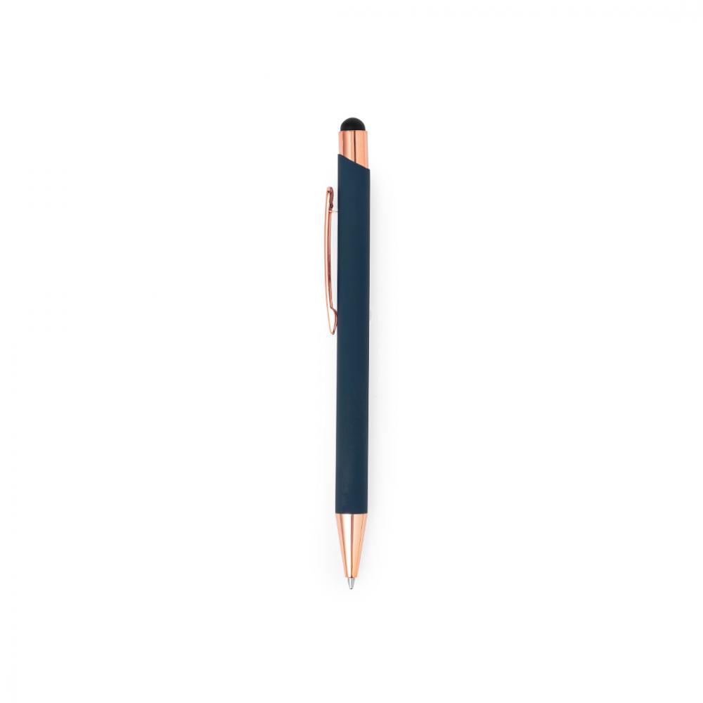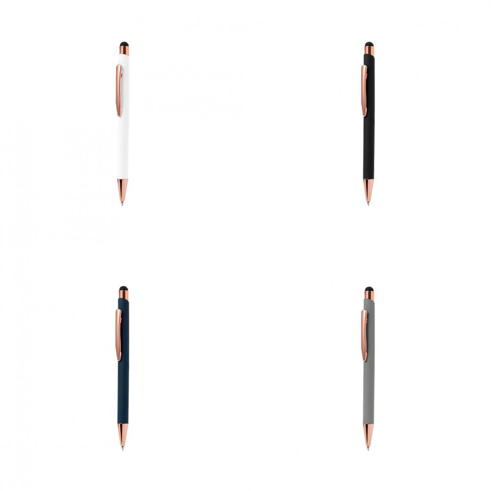 Ручка с резиновым покрытием. Специальная лазерная гравировка - логотип будет цвета розового золота. Нажимной механизм, со стилусом и металлическим клипом. Синие чернила. Представлена в элегантной черной коробке.