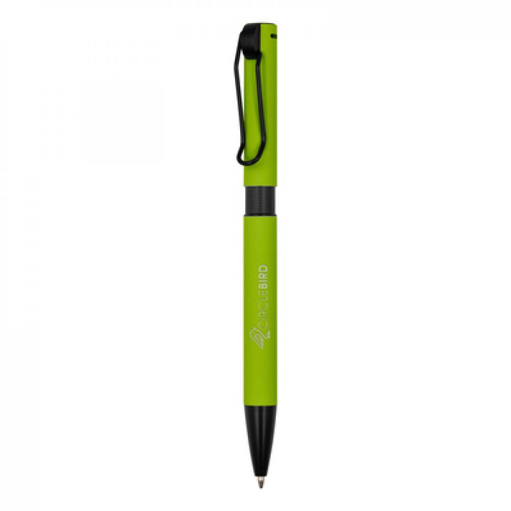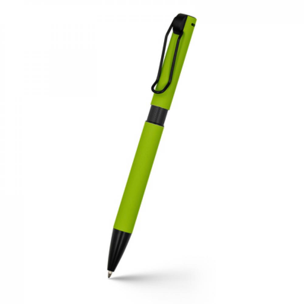 Шариковая ручка с цветным корпусом, черными деталями отделки и клипсой для шнура.