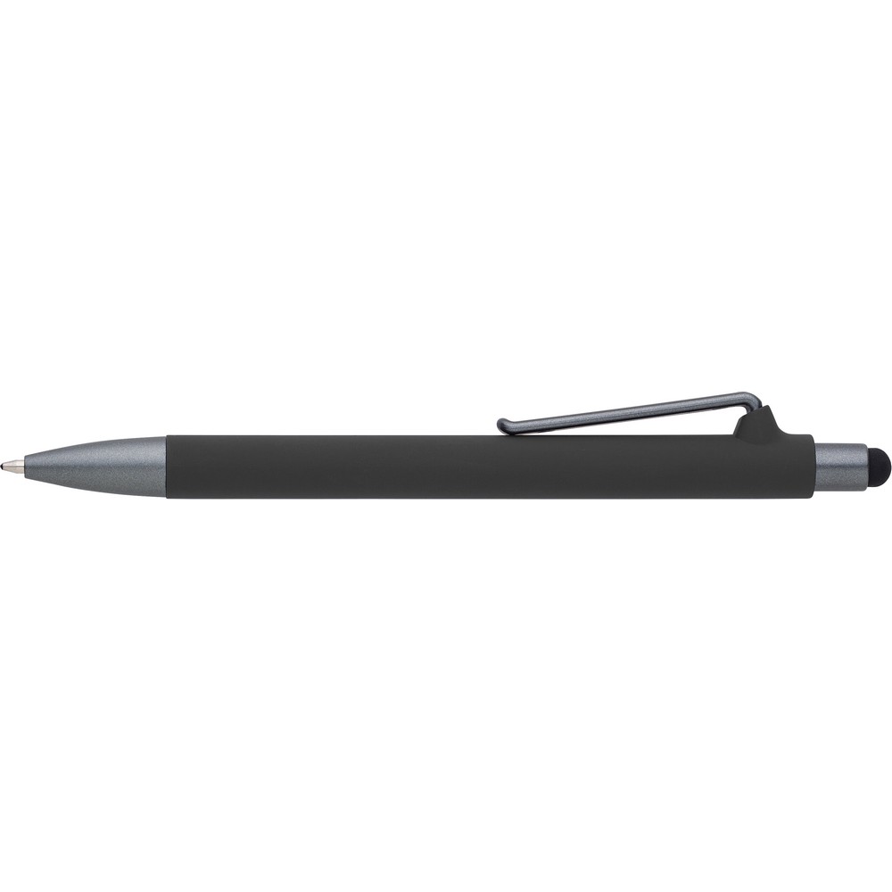 Шариковая ручка со стилусом с матовым грипом и клипом.
