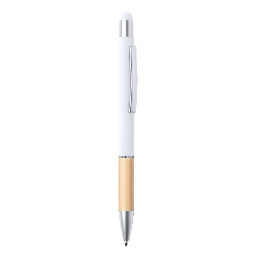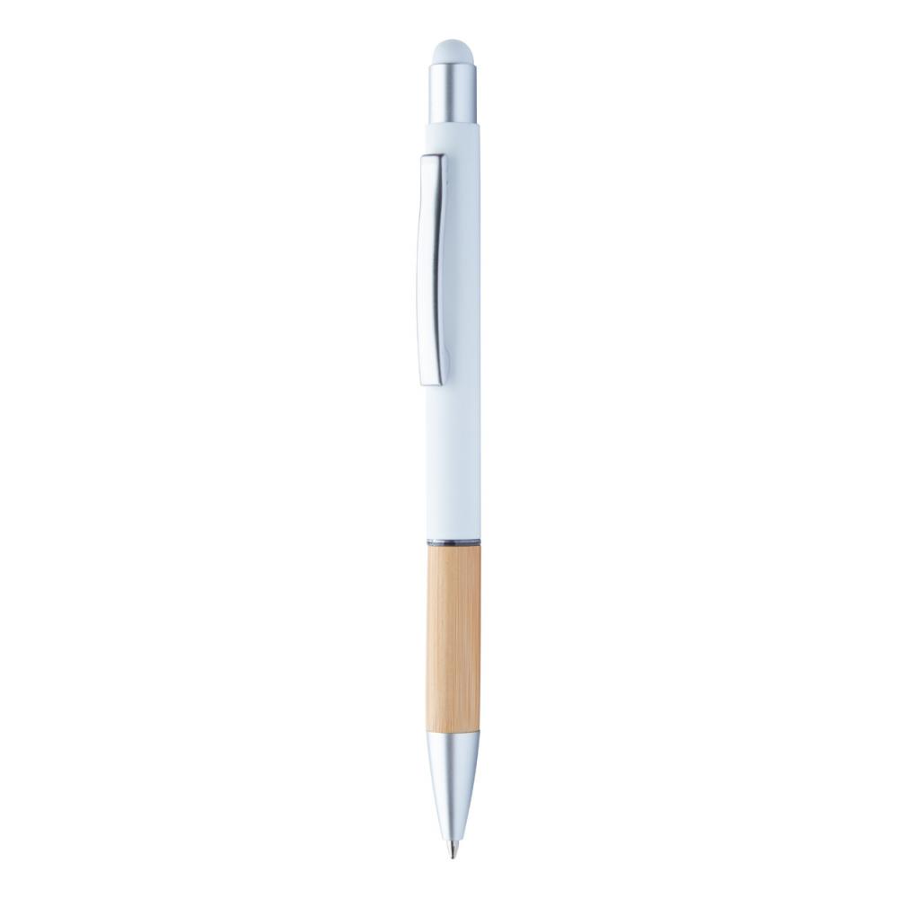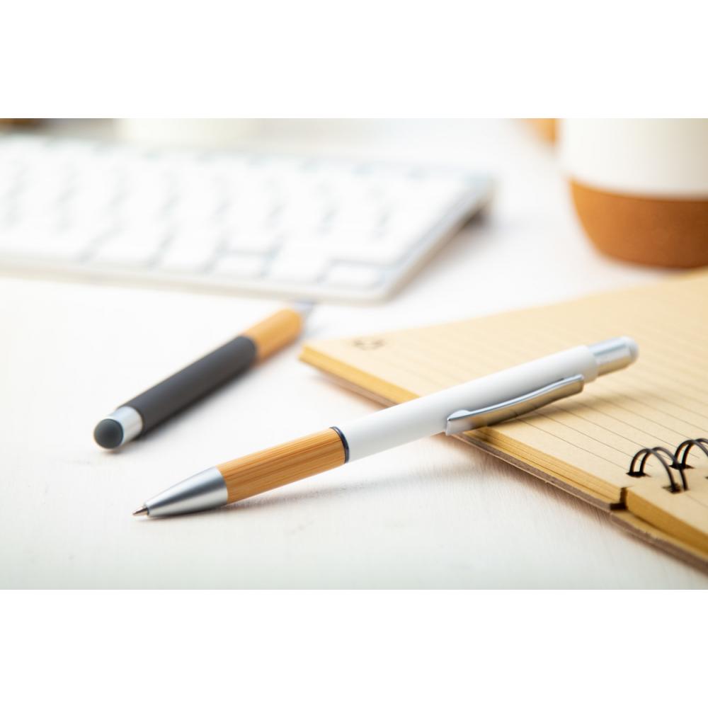 Алюминиевая шариковая ручка и ручка для сенсорного экрана с бамбуковой ручкой и матовым покрытием. С синим стержнем.
