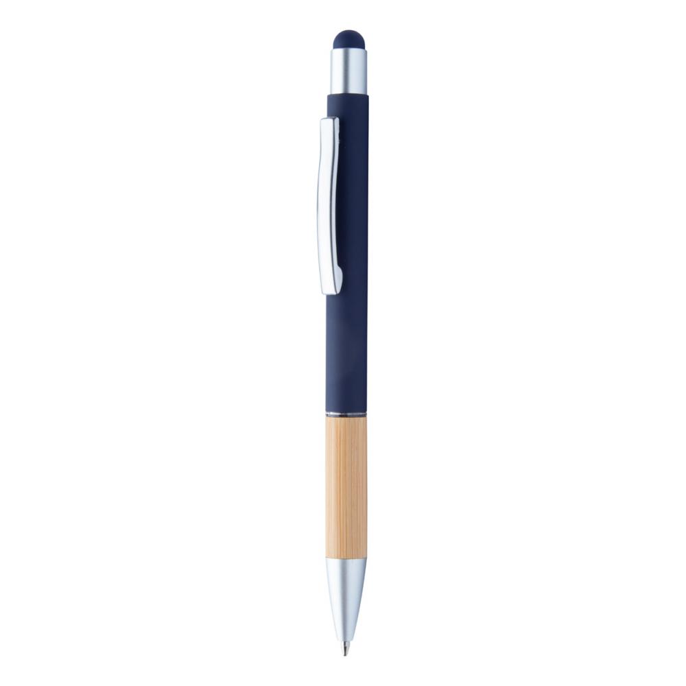 Алюминиевая шариковая ручка и ручка для сенсорного экрана с бамбуковой ручкой и матовым покрытием. С синим стержнем.