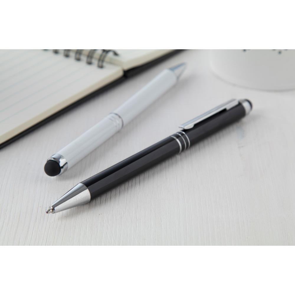 Алюминиевая шариковая ручка и ручка для сенсорного экрана с синим стержнем.