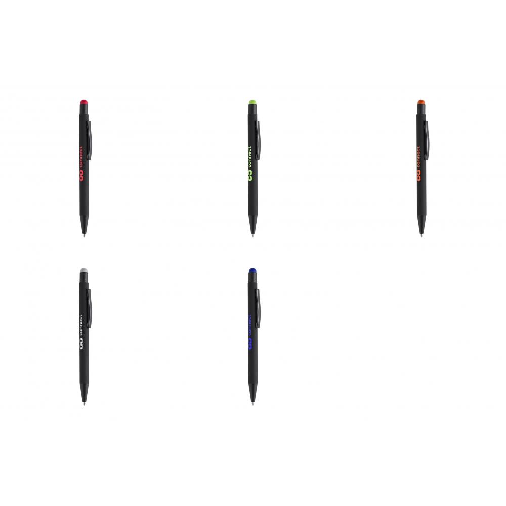 Особенности Шариковая ручка-указка с поворотным механизмом, корпус черного сплошного цвета и толкатель в широкой цветовой гамме. Металлическая клипса черного цвета. Специально разработан для лазерной гравировки, включая специальное покрытие для правильной гравировки вашего логотипа в соответствии с цветом указателя. Большой картридж и синие чернила. Гигантская заправка Алюминий