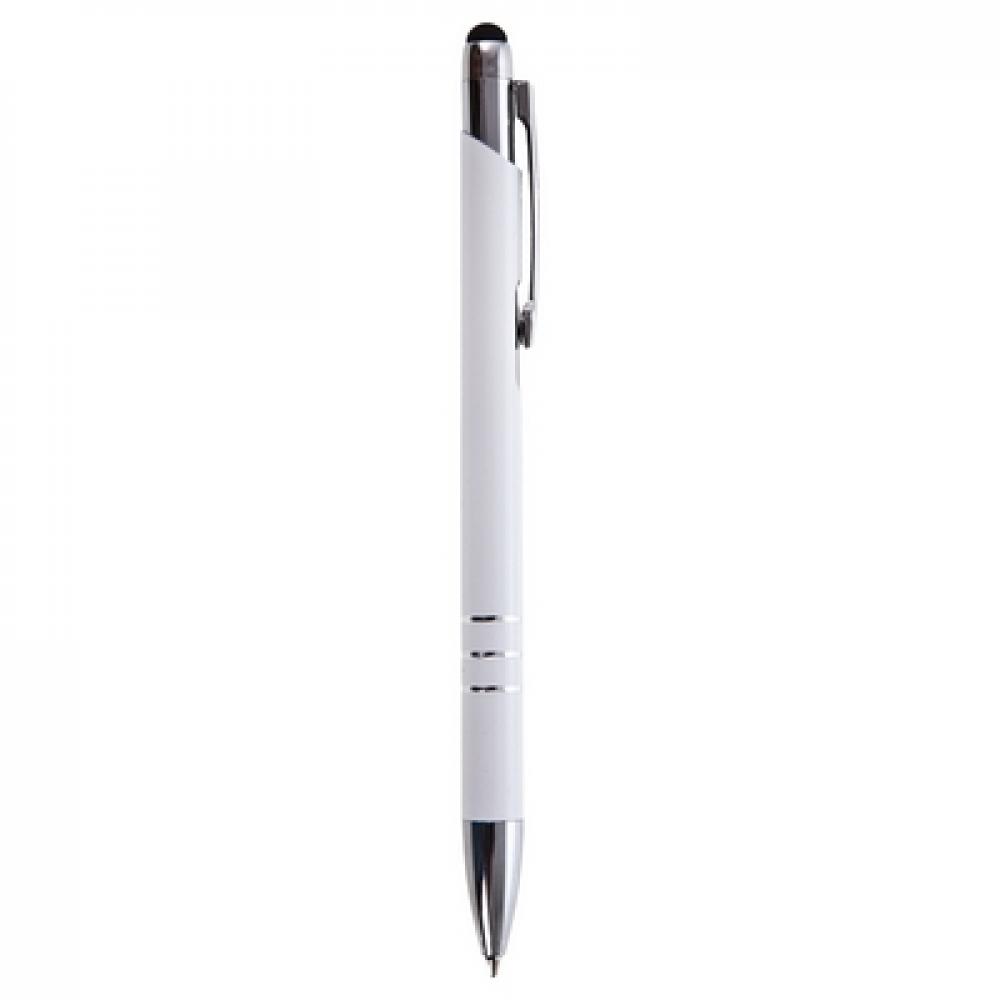 Шариковая ручка, стилус с черным резиновым наконечником, цветной корпус и серебристая отделка