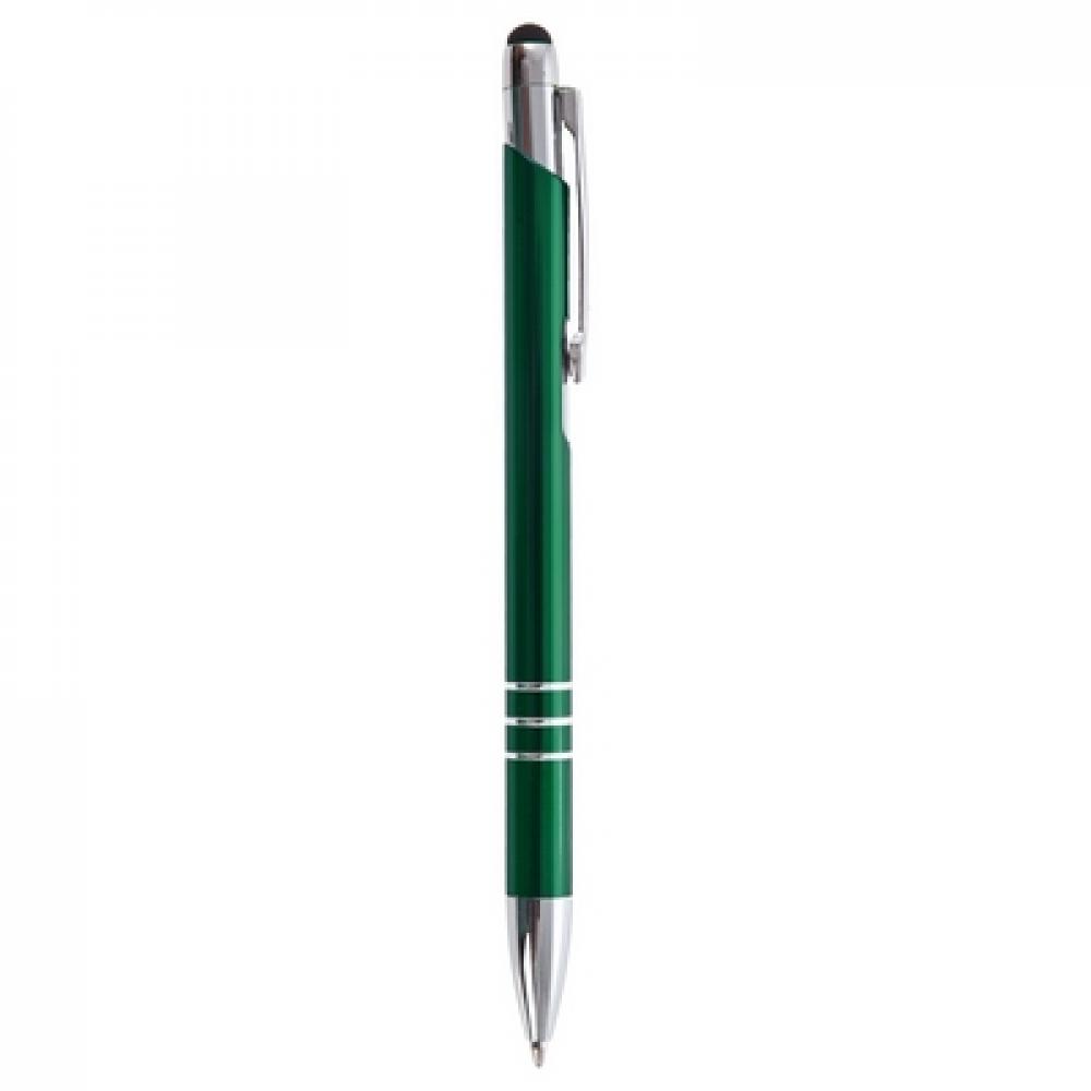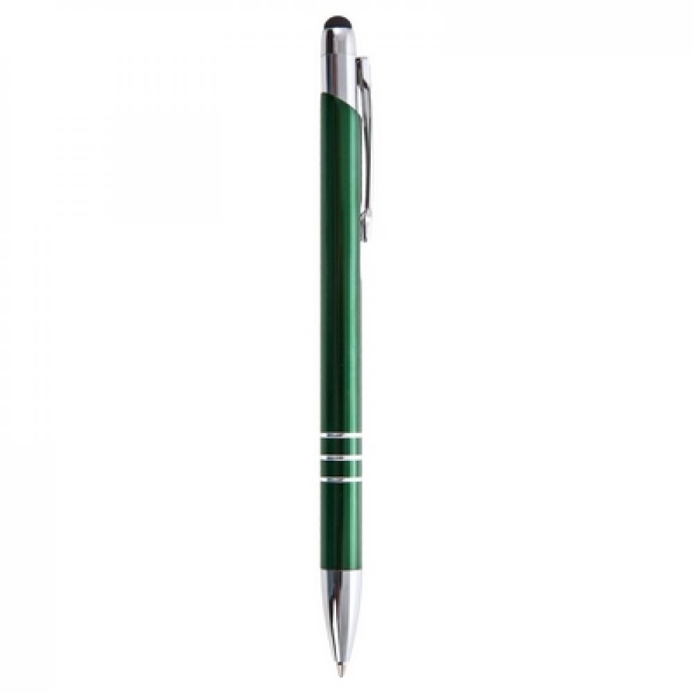 Шариковая ручка, стилус с черным резиновым наконечником, цветной корпус и серебристая отделка