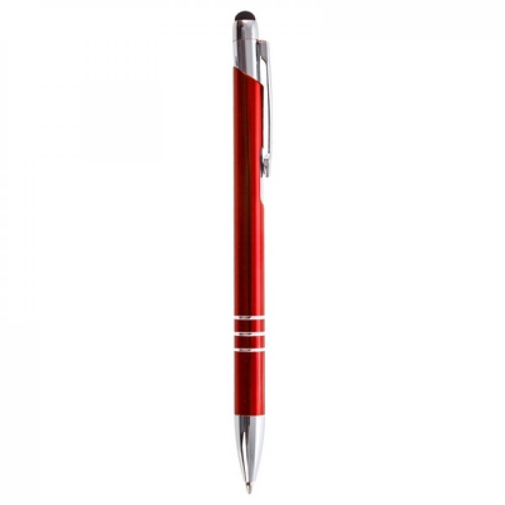Шариковая ручка, стилус с черным резиновым наконечником, цветной корпус и серебристая отделка