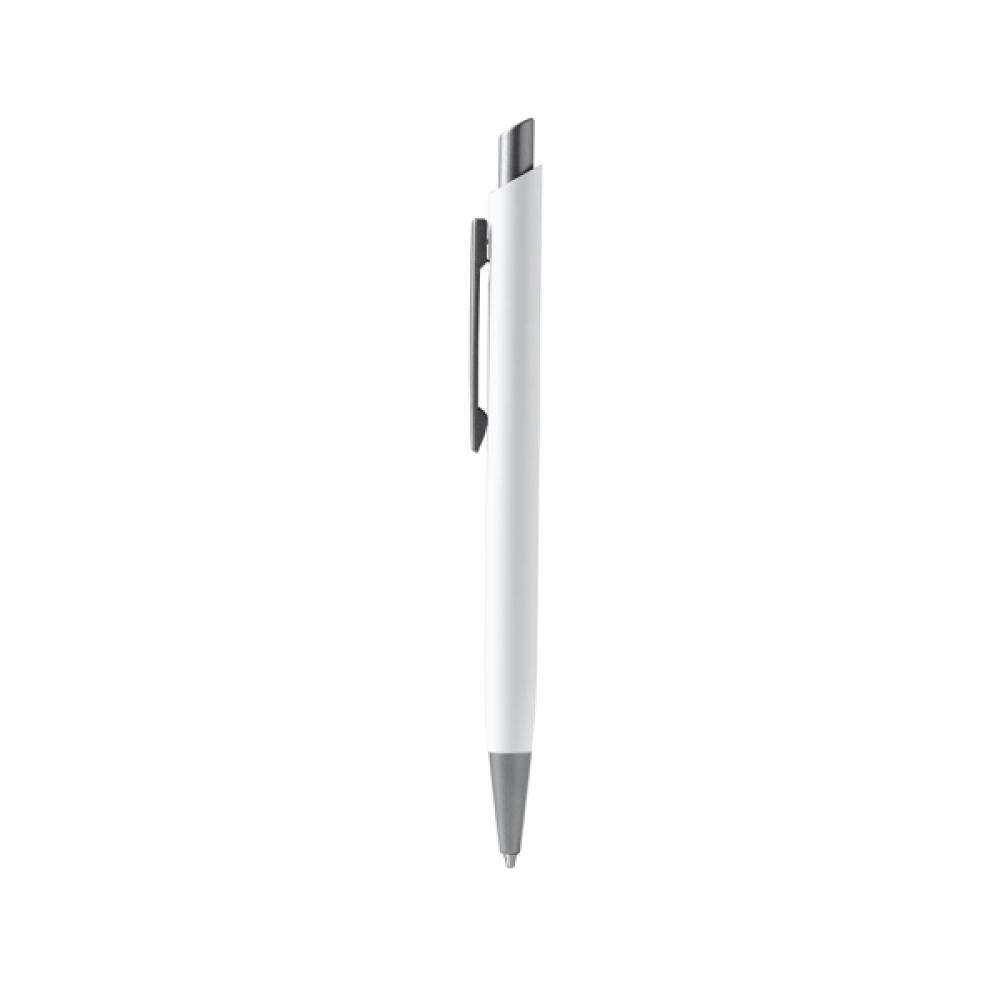 Ручка с корпусом из переработленного алюминия и деталями в матовой металлической отделке. Синий стержень.
