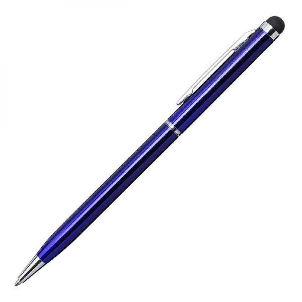 Алюминиевая шариковая ручка с наконечником, предназначенным для работы с устройствами с сенсорным экраном. С поворотным механизмом. Синие чернила.