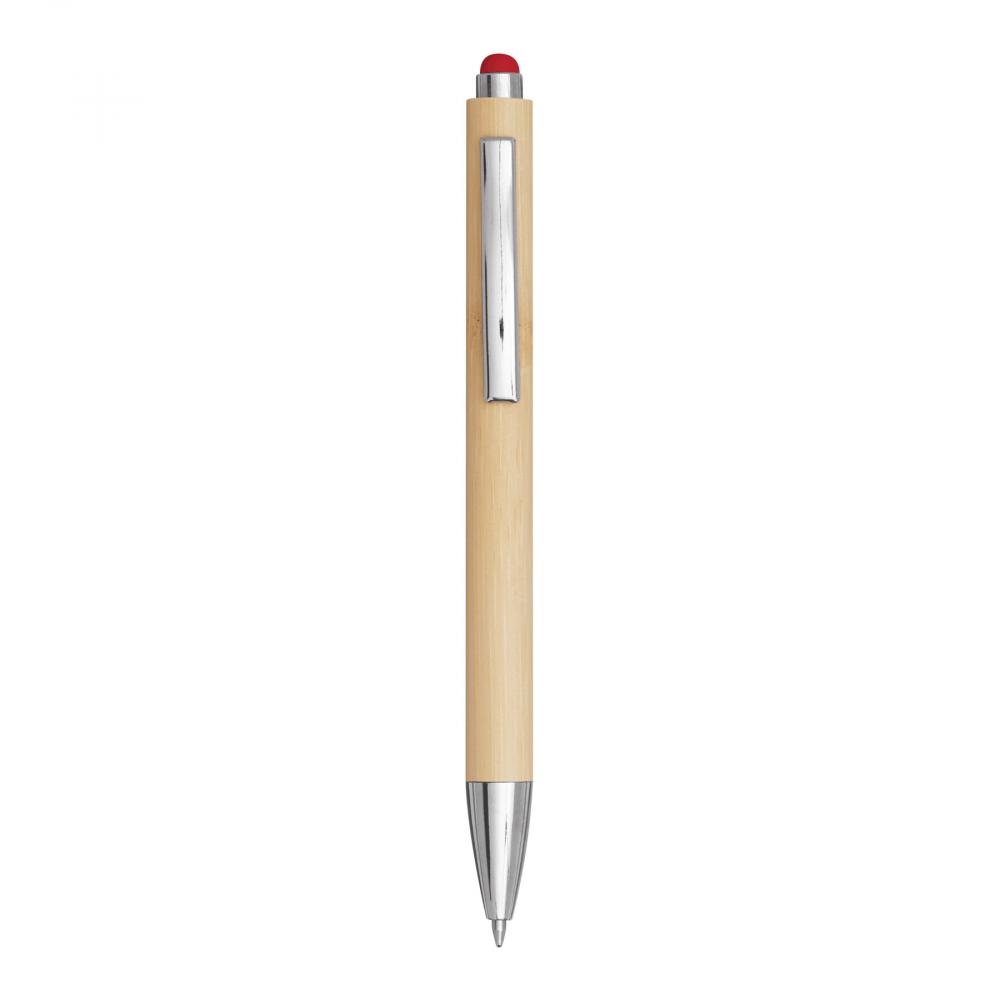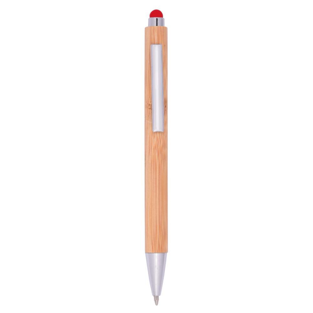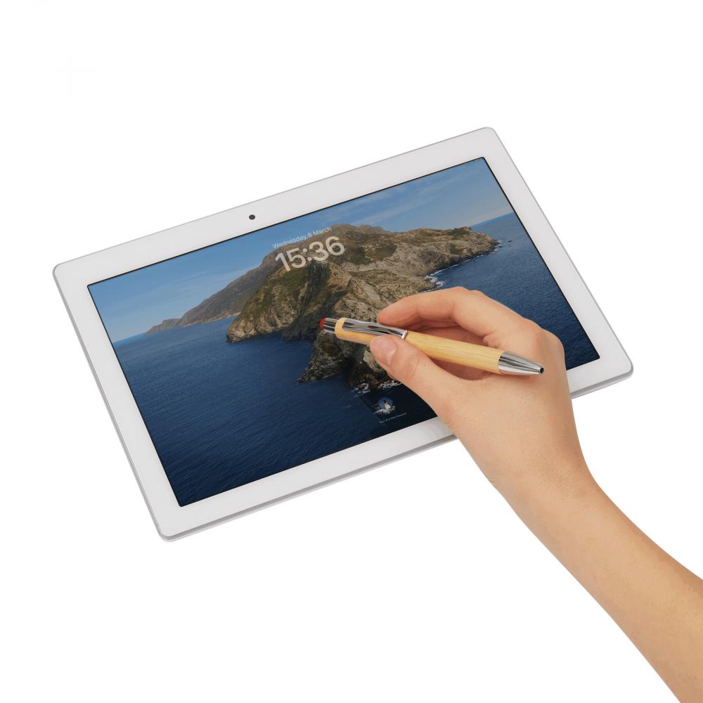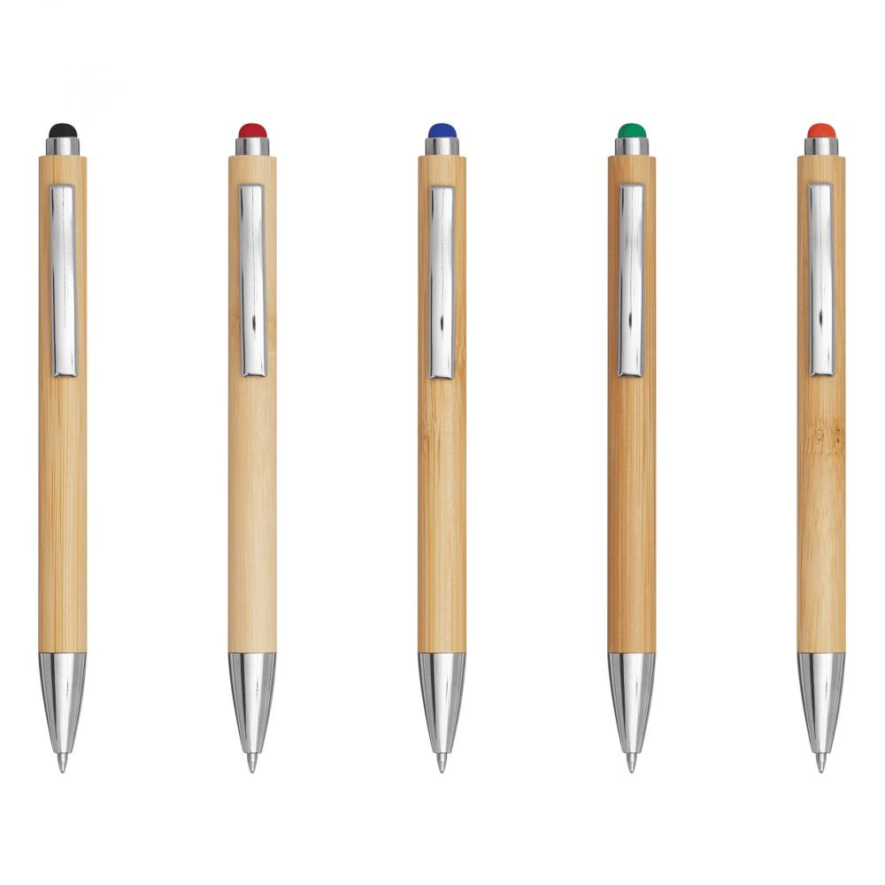 Шариковая ручка TOUCHY: снаружи покрыта бамбуком, нажимной механизм, цветной сенсорный наконечник для работы со смартфонами и планшетами, синие чернила