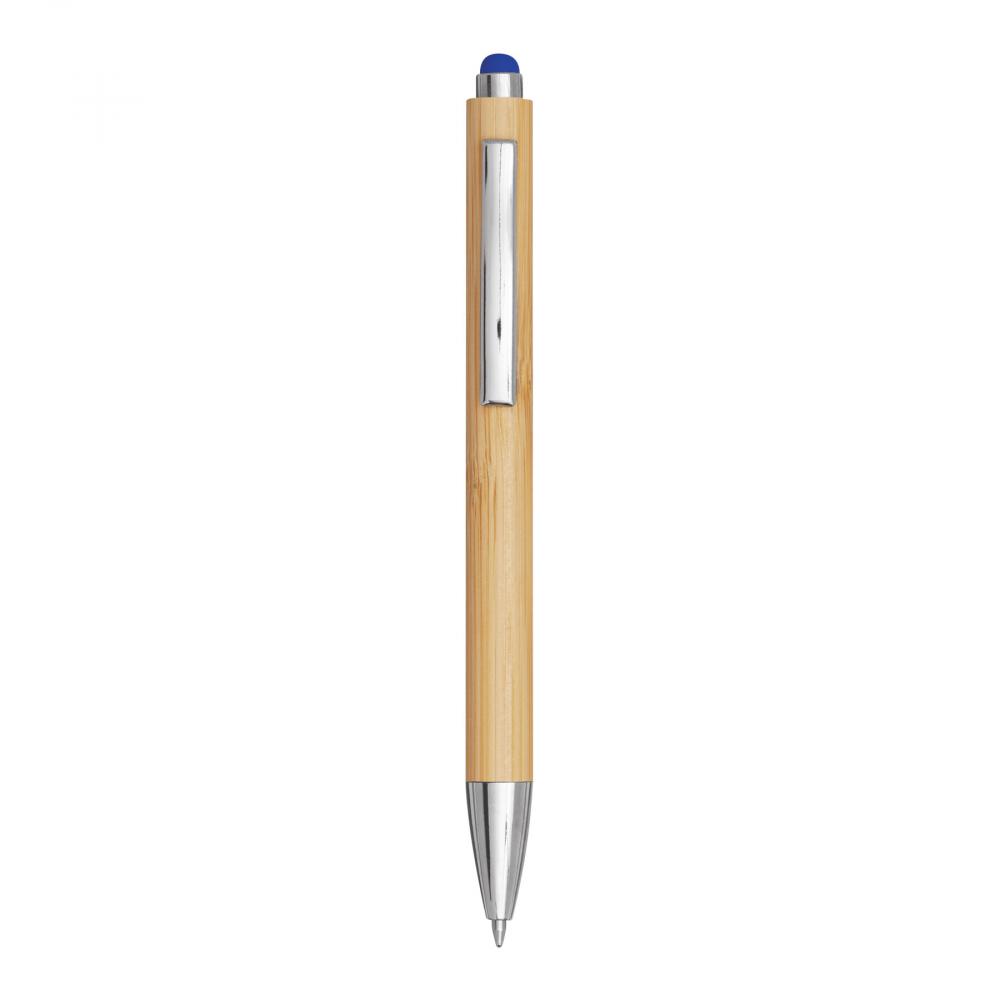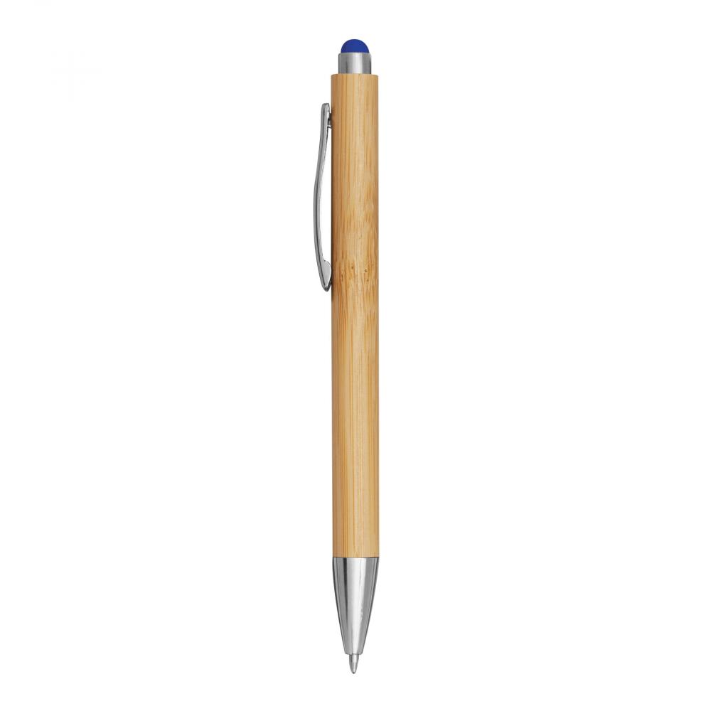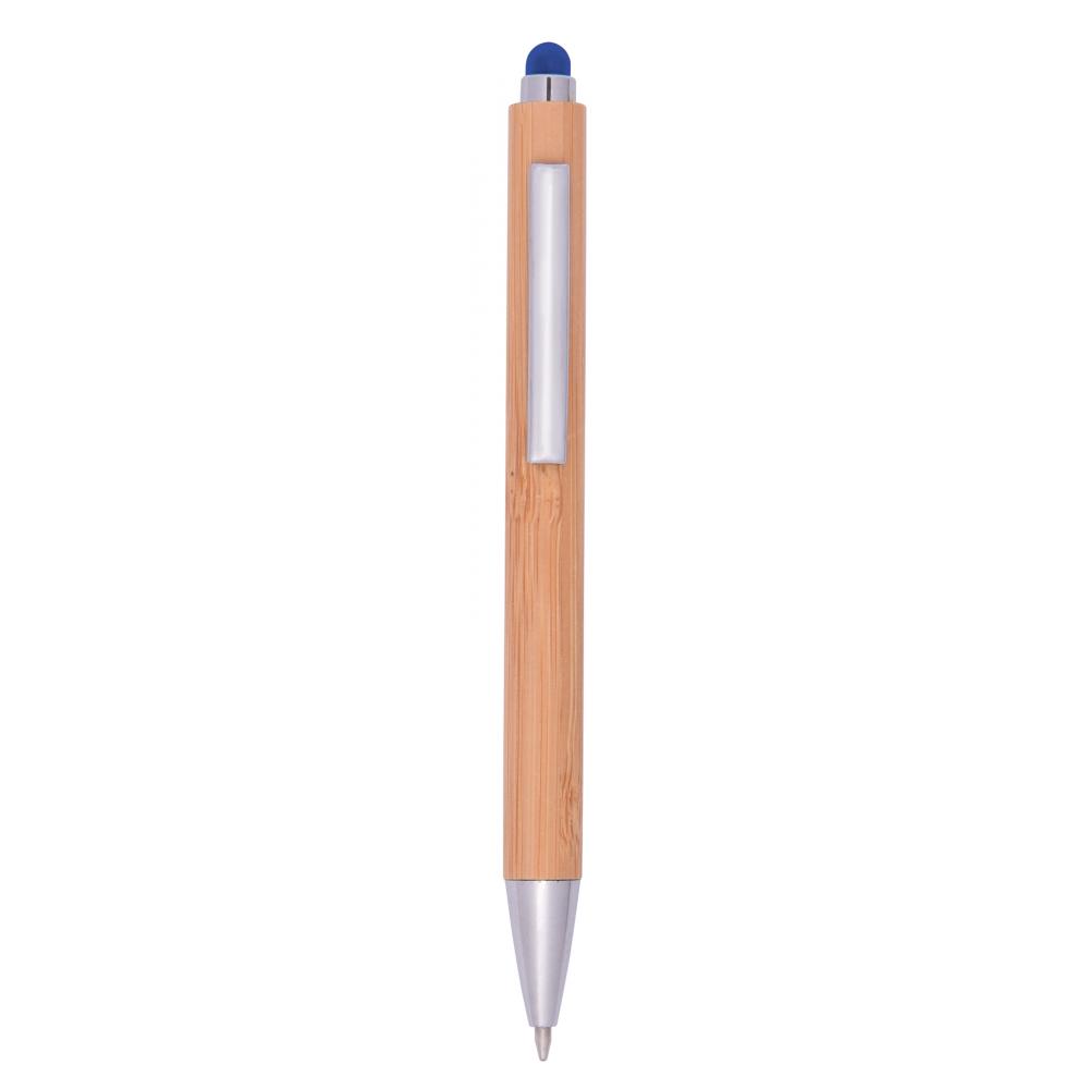 Шариковая ручка TOUCHY: снаружи покрыта бамбуком, нажимной механизм, цветной сенсорный наконечник для работы со смартфонами и планшетами, синие чернила
