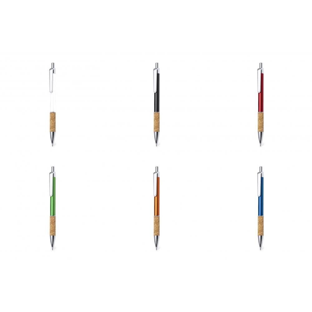 Характеристики Стильная шариковая ручка с корковым и алюминиевым корпусом и механизмом нажатия. Прочный алюминиевый корпус с блестящей отделкой и корковой ручкой, доступен в различных отличительных цветах. Металлический зажим и синие чернила. Поставляется в индивидуальном переработанном мешочке. Изготовлен с использованием растительных элементов для поощрения использования натуральных сырьевых материалов и снижения загрязняющих выбросов. Алюминий/Корк