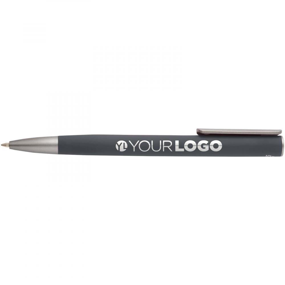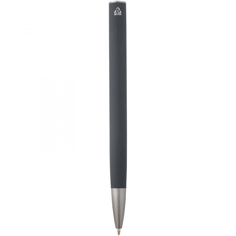 Шариковая ручка с корпусом из переработанного алюминия и серебристым зажимом из пластика ABS. Цвет чернил: синий. Длина письма: 800 метров. Размер наконечника: 1,0 мм.