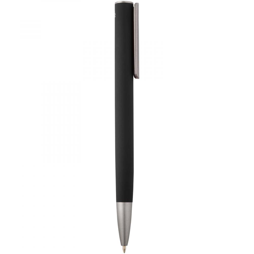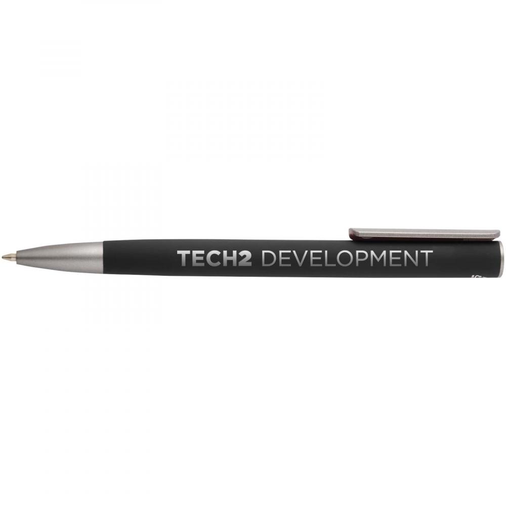 Шариковая ручка с корпусом из переработанного алюминия и серебристым зажимом из пластика ABS. Цвет чернил: синий. Длина письма: 800 метров. Размер наконечника: 1,0 мм.