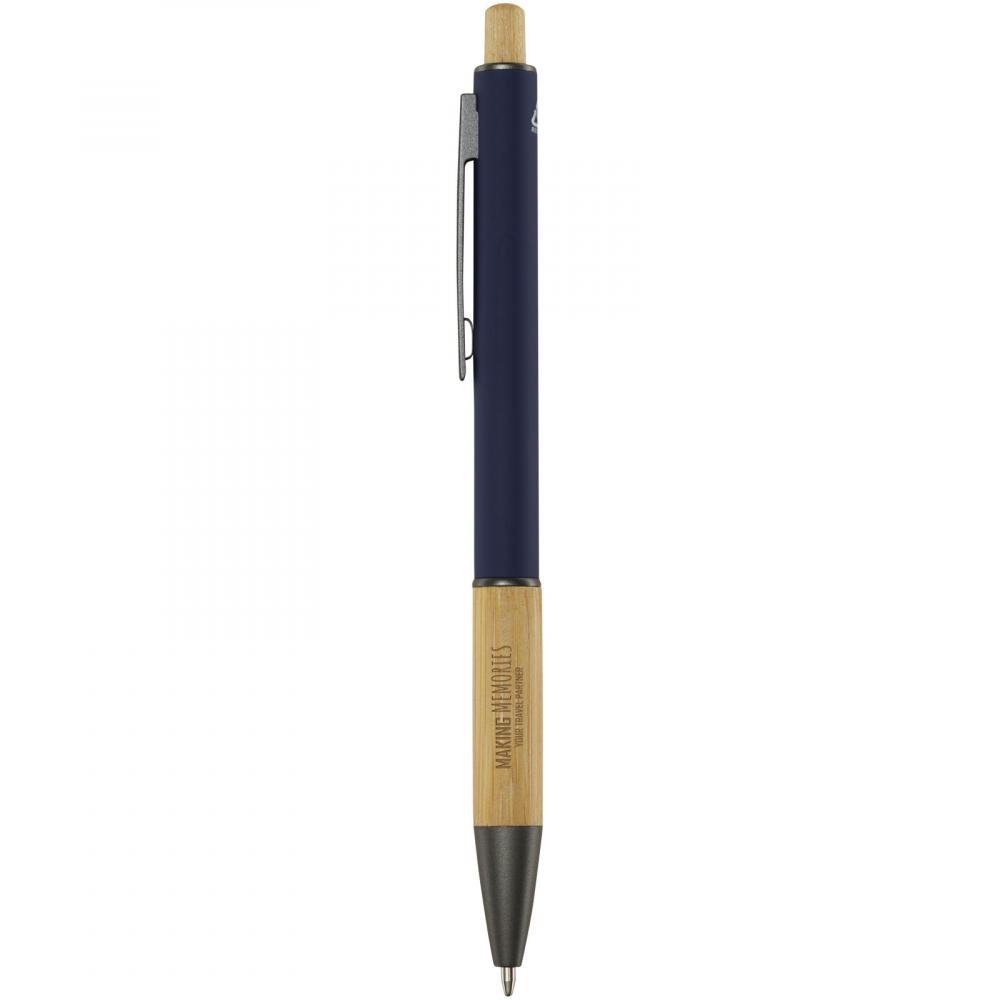 Шариковая ручка Darius изготовлена из переработанного алюминия, что требует меньше энергии по сравнению с производством алюминия из сырья. Это также уменьшает количество отходов на свалках и помогает сохранять природные ресурсы, стремясь сократить выбросы парниковых газов. Кнопка и нижняя часть корпуса сделаны из бамбука. Цвет чернил: черный. Длина письма: 800 метров. Размер пера: 1,00 мм.