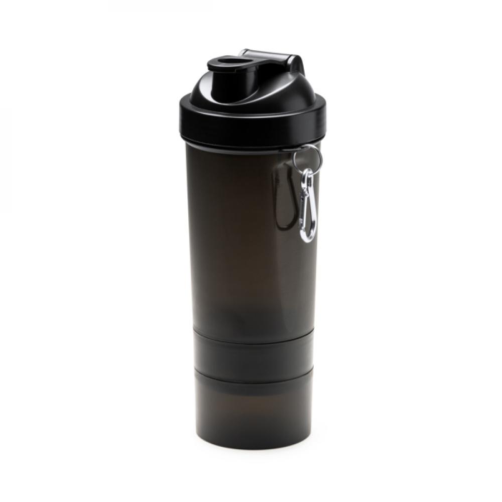 Шейкер из ПП с мешалкой из нержавеющей стали 304. Диспенсер из ПП с отделениями для добавок. Объем: 600 мл. В комплекте карабин. Поставляется в дизайнерской коробке.