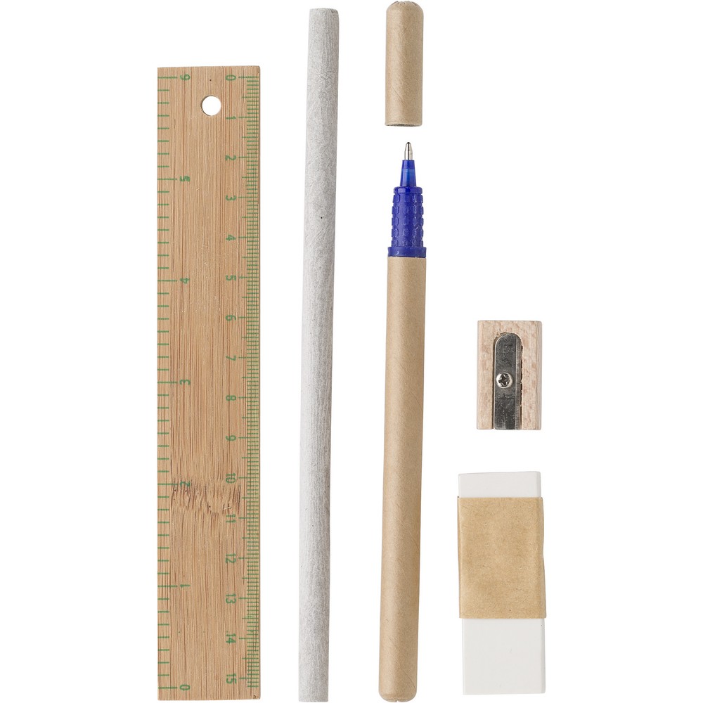 Эко школьный набор, пенал, карандаш, шариковая ручка, точилка, ластик, линейка 15 см.