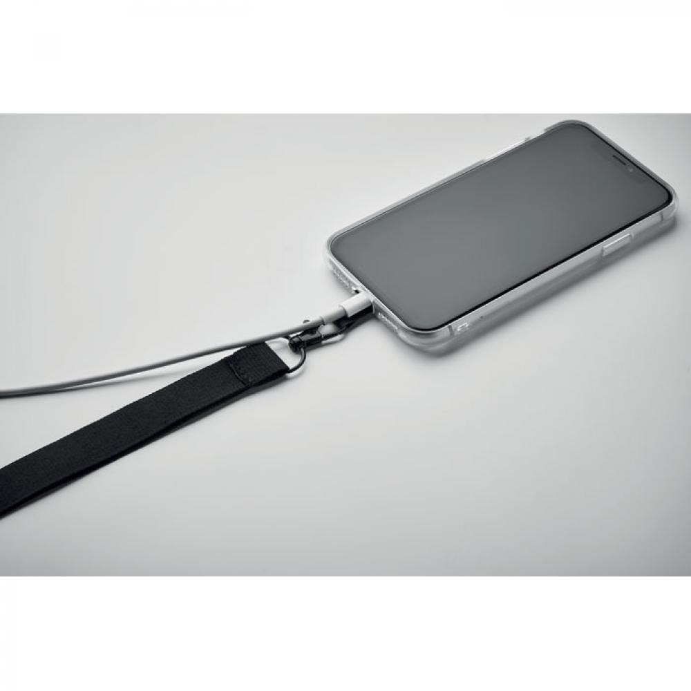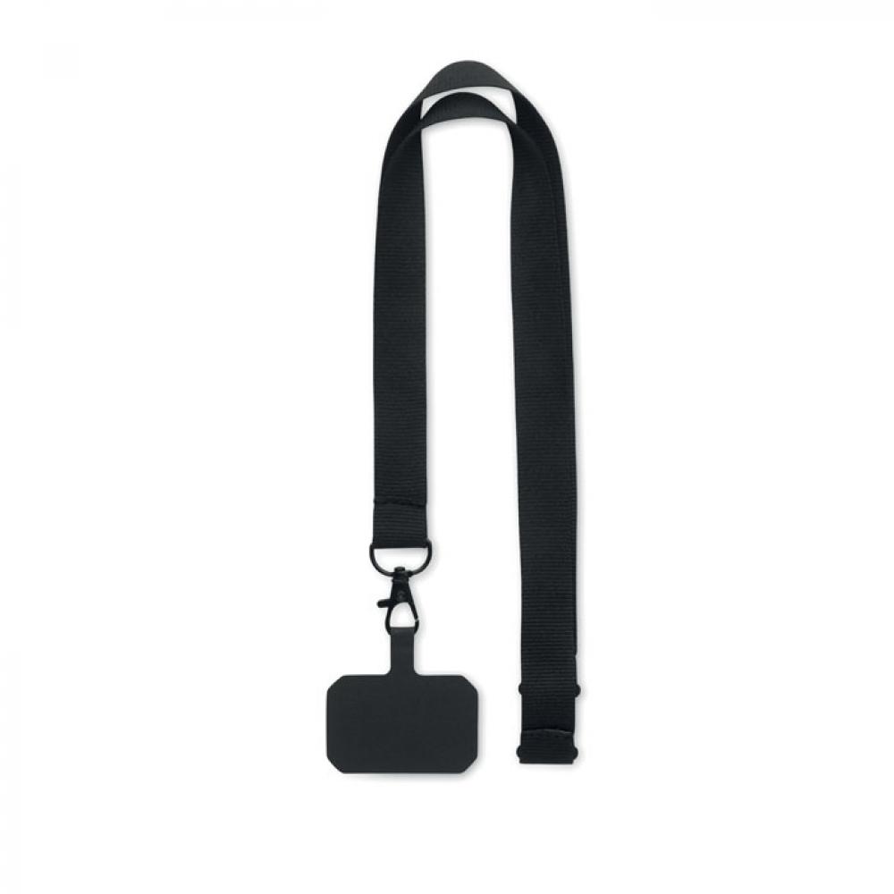 Ланьярд из полиэстера с держателем для телефона и безопасной застежкой. Ширина 2 см.