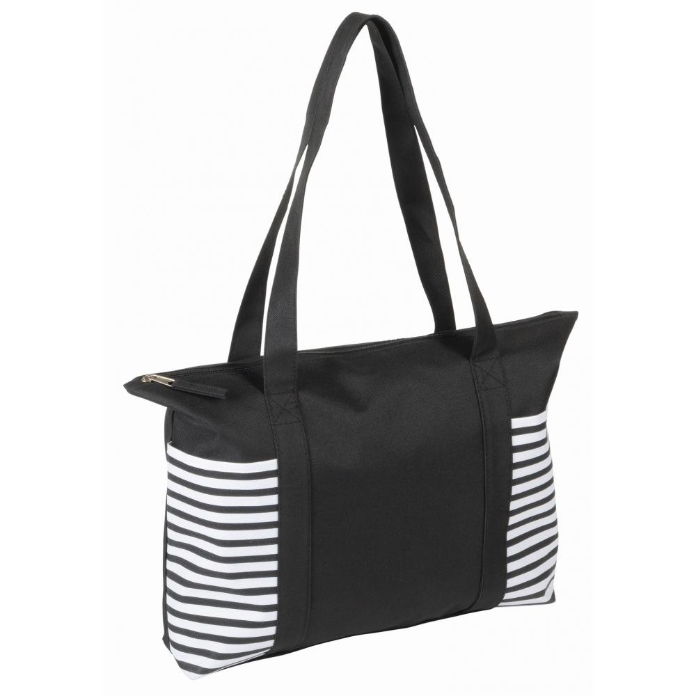 Шоппер TWIN: основное отделение на молнии, 2 боковых кармана с полосками, две длинные ручки для переноски.