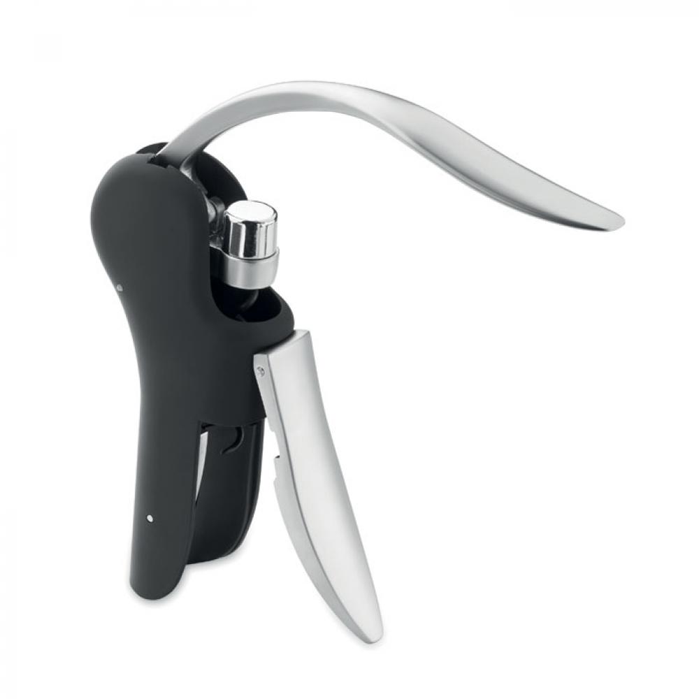 Автоматический ручной рычажный штопор из пластика с прорезиненным покрытием.