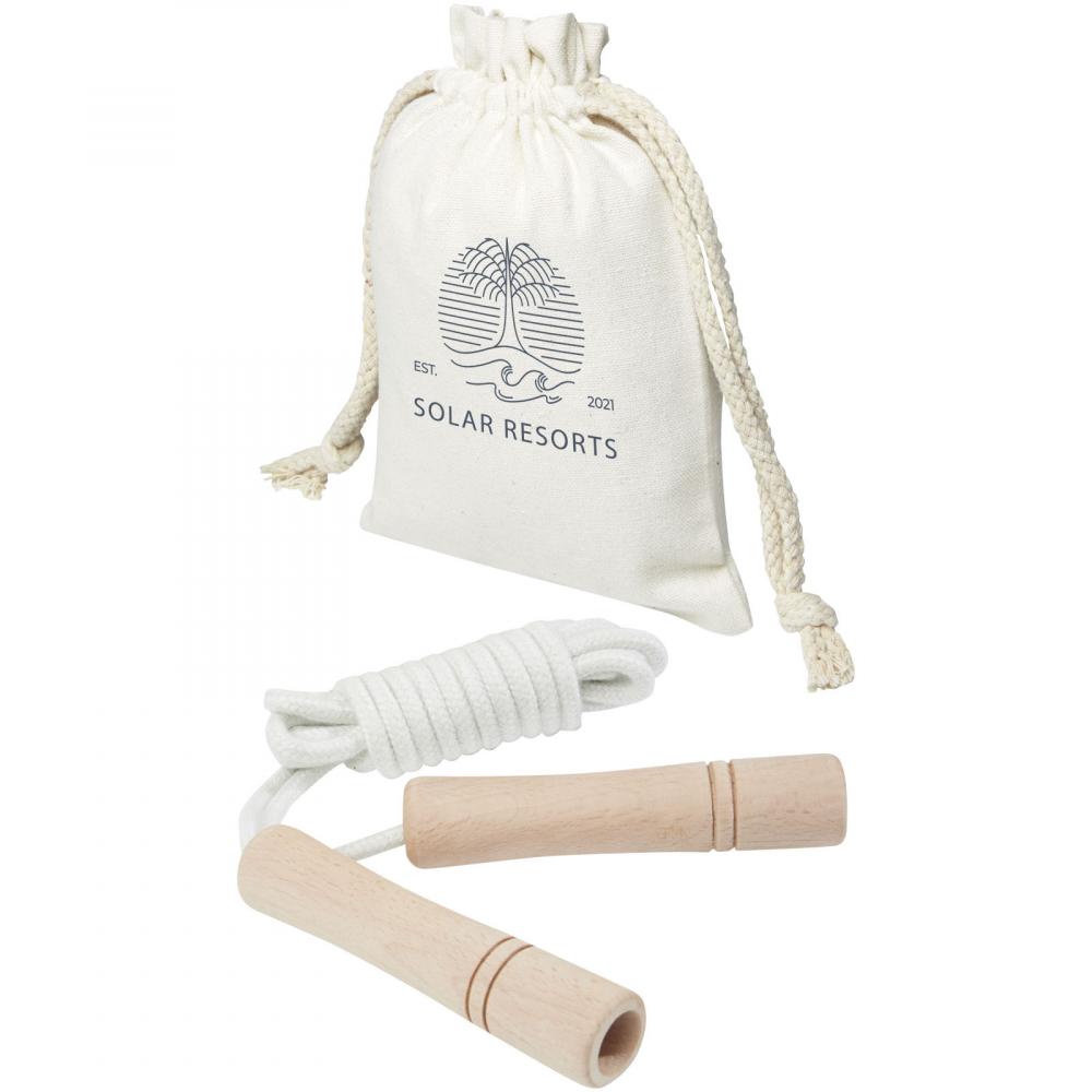 Совместите удовольствие и физическую активность с этим скакалкой для взрослых. Веревка изготовлена из хлопка, а ручки — из бука. Длина веревки составляет 310 см, что позволяет легко прыгать взрослым ростом до 195 см. Эргономично оформленные ручки (12 x 2,5 см) обеспечивают удобный захват. Поставляется с хлопковым мешочком для хранения (18 x 13 см). Рекомендуется лазерная гравировка как экологичный вариант декорирования.