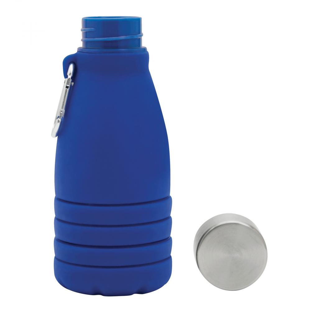 Складная бутылка для питья BIG GETS SMALL: крышка из нержавеющей стали с надежной завинчивающейся крышкой и силиконовым уплотнительным кольцом, с алюминиевым карабином (карабин НЕ подходит для скалолазания), бутылка может быть удлинена и сложена на примерно 8 см, вместимость около 550 мл