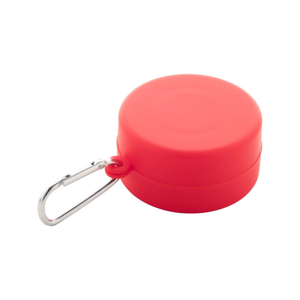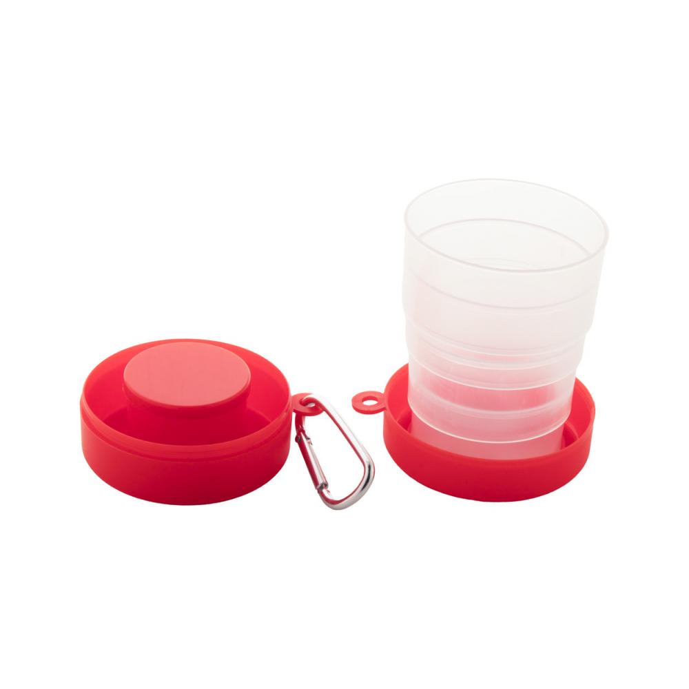 Складная чашка из переработанного полипропилена с отделением для таблеток и металлическим карабином. Объем - 220 мл.