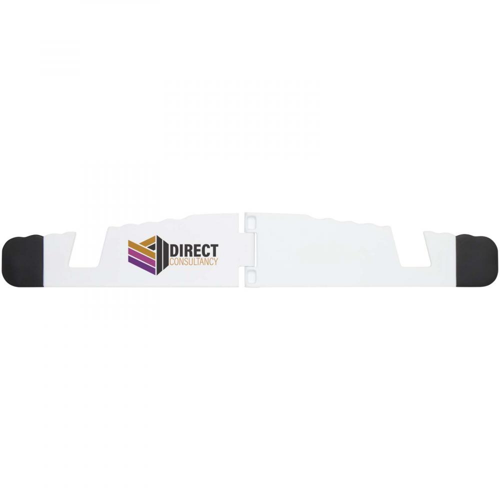 Складная подставка для планшетов и телефонов Buna изготовлена из переработанного пластика, что делает её более экологичным выбором. Благодаря своему тонкому дизайну она легко помещается в любой карман, что делает её идеальной для путешествий.