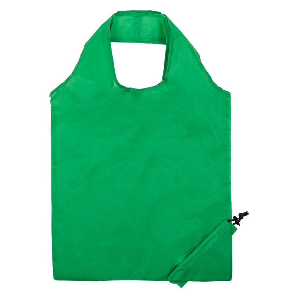 Складная сумка для покупок, сложенная в угол, с веревочкой и пластиковой пробкой