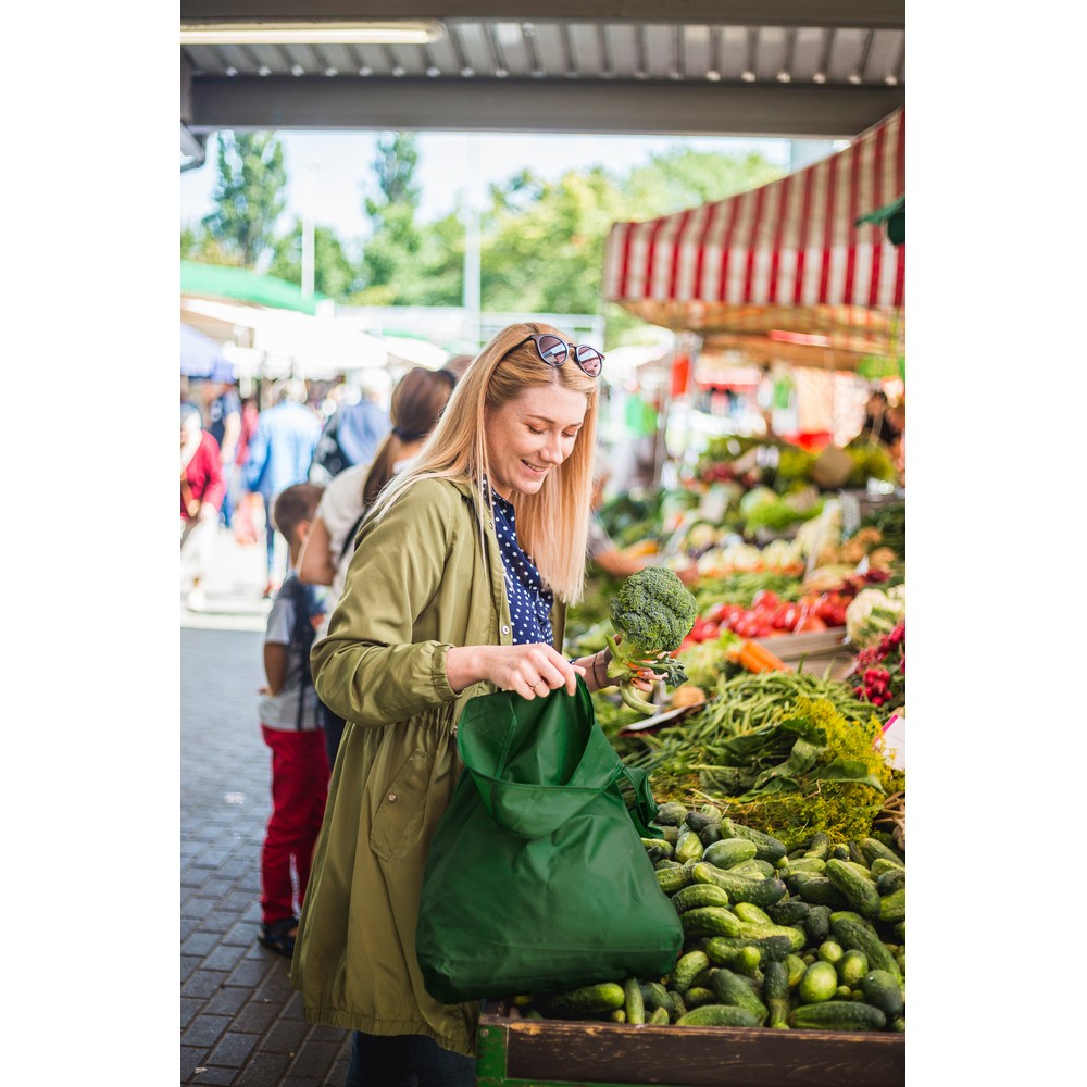 Сумка для покупок из РПЭТ с длинными ручками, складная, большое основное отделение, широкие ручки для удобной переноски, прочное дно без швов, модный дизайн
