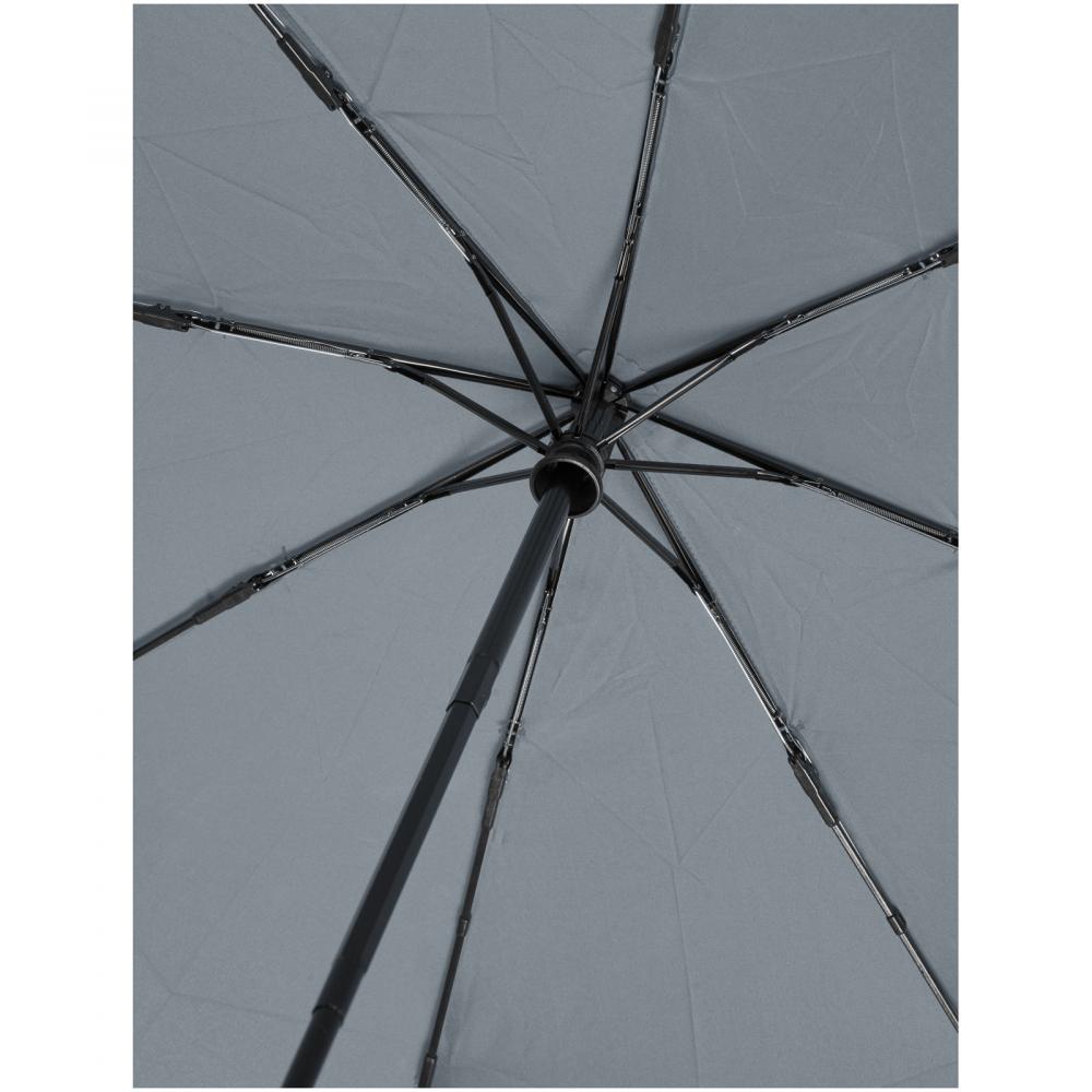 Автоматический складной зонт с функцией открытия и закрытия, с куполом из переработанного полиэстера понже (PET). Прочный металлический стержень, высококачественная рама с ребрами из стекловолокна, обеспечивающими максимальную гибкость в ветреных условиях. Поставляется с чехлом и легко помещается в сумочку или рюкзак для удобной переноски. Вместе с деревянной ручкой и куполом из переработанного полиэстера понже (PET) это является устойчивым выбором. Доступен в широком ассортименте современных цветов с большой площадью для нанесения декора на каждом из панелей.