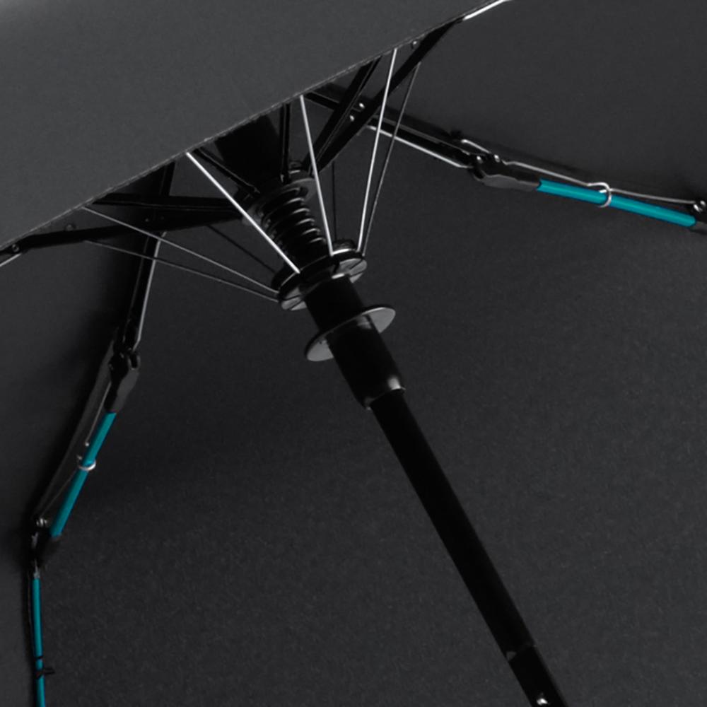 Удобная автоматическая функция для быстрого открытия, высококачественная ветрозащитная система для максимальной гибкости каркаса в штормовых условиях, гибкие спицы из стекловолокна, материал полиэстер понже из переработанных пластиков, экологически чистый благодаря оригинальному материалу покрытия waterSAVE®, с этикеткой waterSAVE® на застежке (с новыми поставками), привлекательный дизайн благодаря цветным спицам, кольцам на ручке и швам, ручка с мягким покрытием и кнопкой, с возможностью нанесения рекламной надписи, удобный чехол с цветными швами и цветным гибким шнурком. Также доступен в виде другого мини-зонта.
