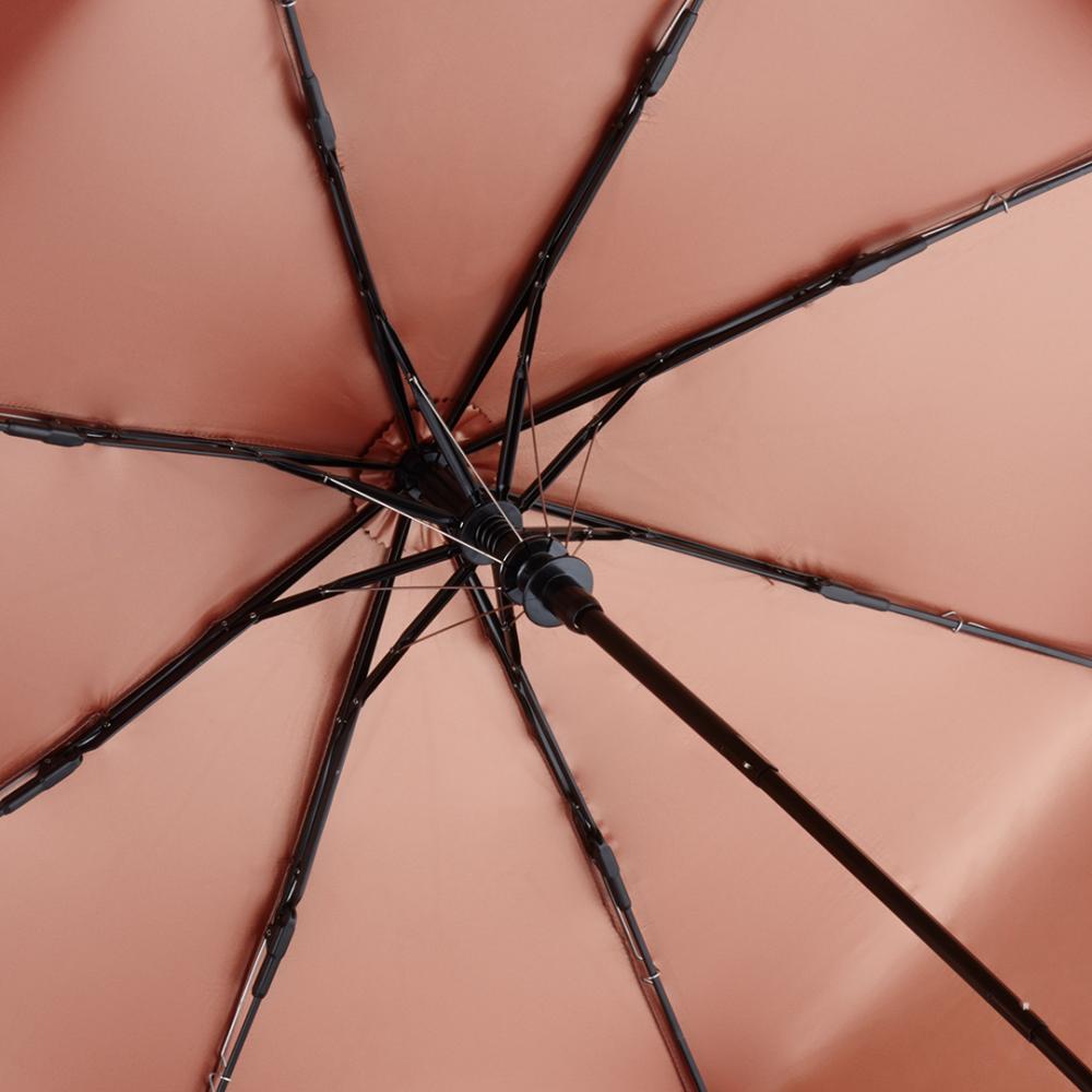 Удобная автоматическая функция для быстрого открытия, высококачественная ветрозащитная система для максимальной гибкости каркаса в штормовых условиях, гармонично сочетающийся двухцветный купол с согласованными внутренними и внешними цветами, швы, розетка и застежка в цвете, соответствующем внутренней части купола, покрытие с внутренним покрытием, эргономичная ручка Soft-Feel с интегрированной кнопкой и возможностью нанесения рекламной надписи, цветной ремешок на ручке, чехол с цветной окантовкой. Также доступен в виде обычного зонта.