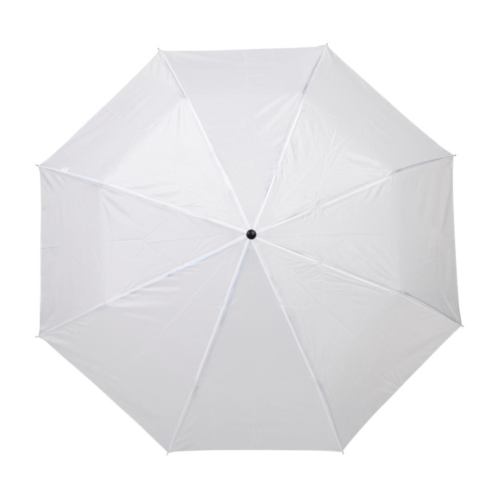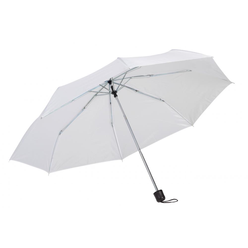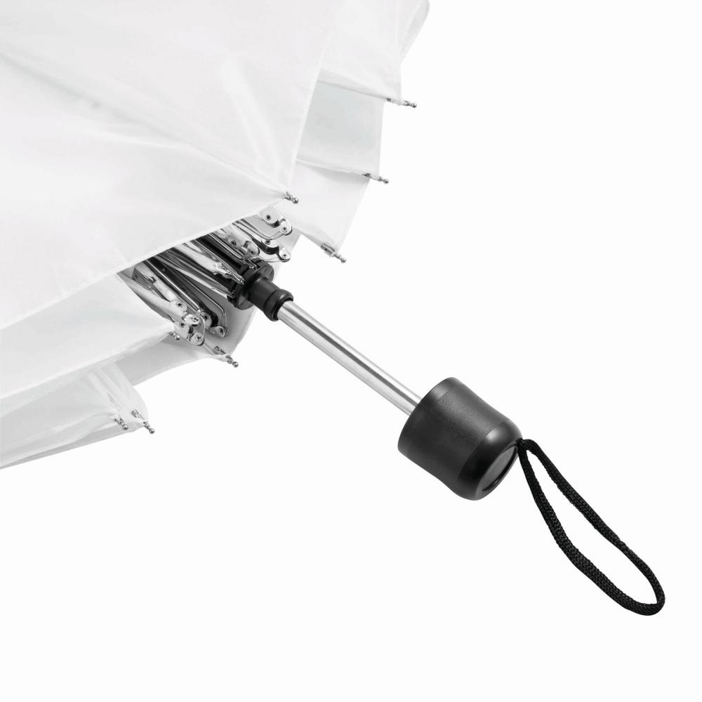 Карманный зонт PICOBELLO с трехкомпонентным металлическим стержнем, металлическими ребрами жесткости, черной пластиковой ручкой и капюшоном из полиэстера, застежка на липучку.