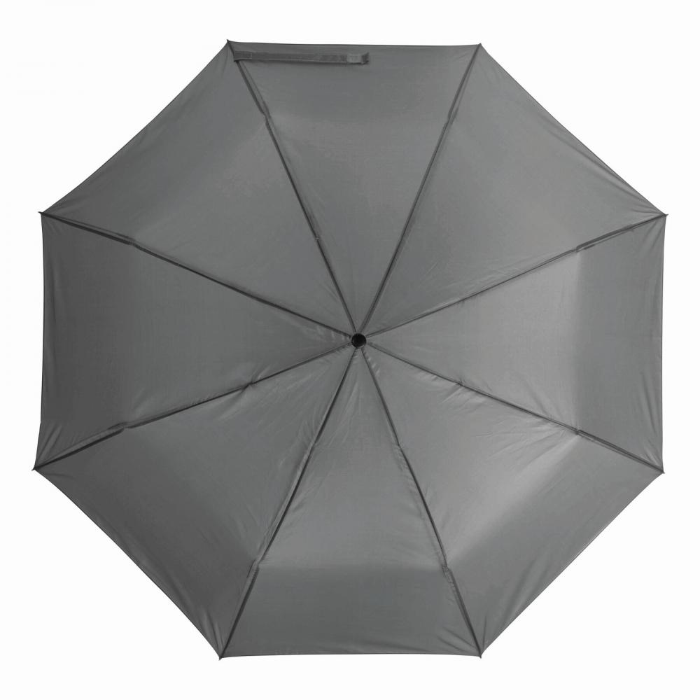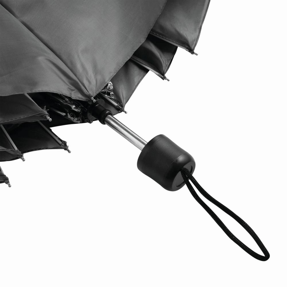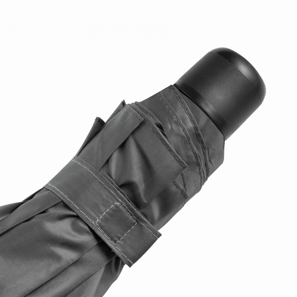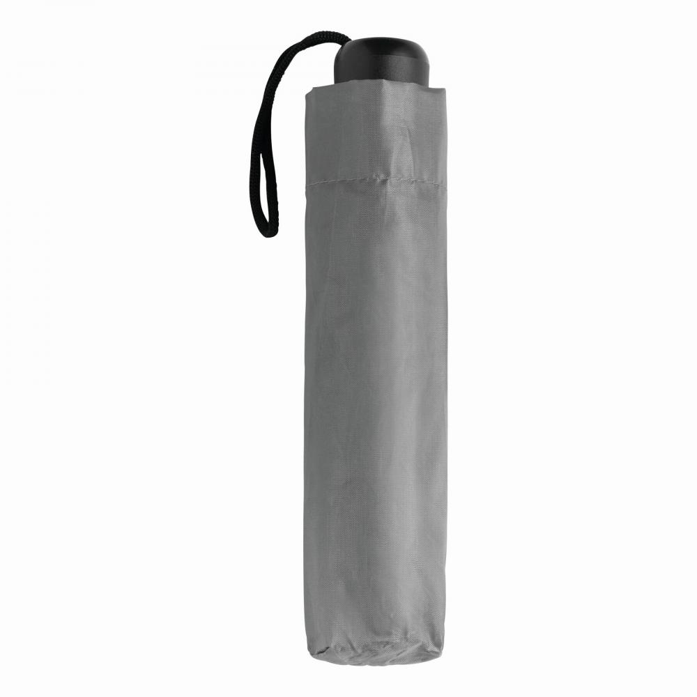 Карманный зонт PICOBELLO с трехкомпонентным металлическим стержнем, металлическими ребрами жесткости, черной пластиковой ручкой и капюшоном из полиэстера, застежка на липучку.