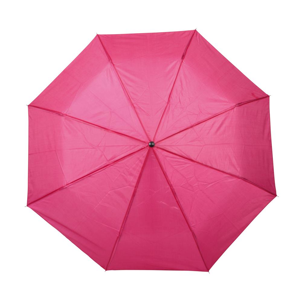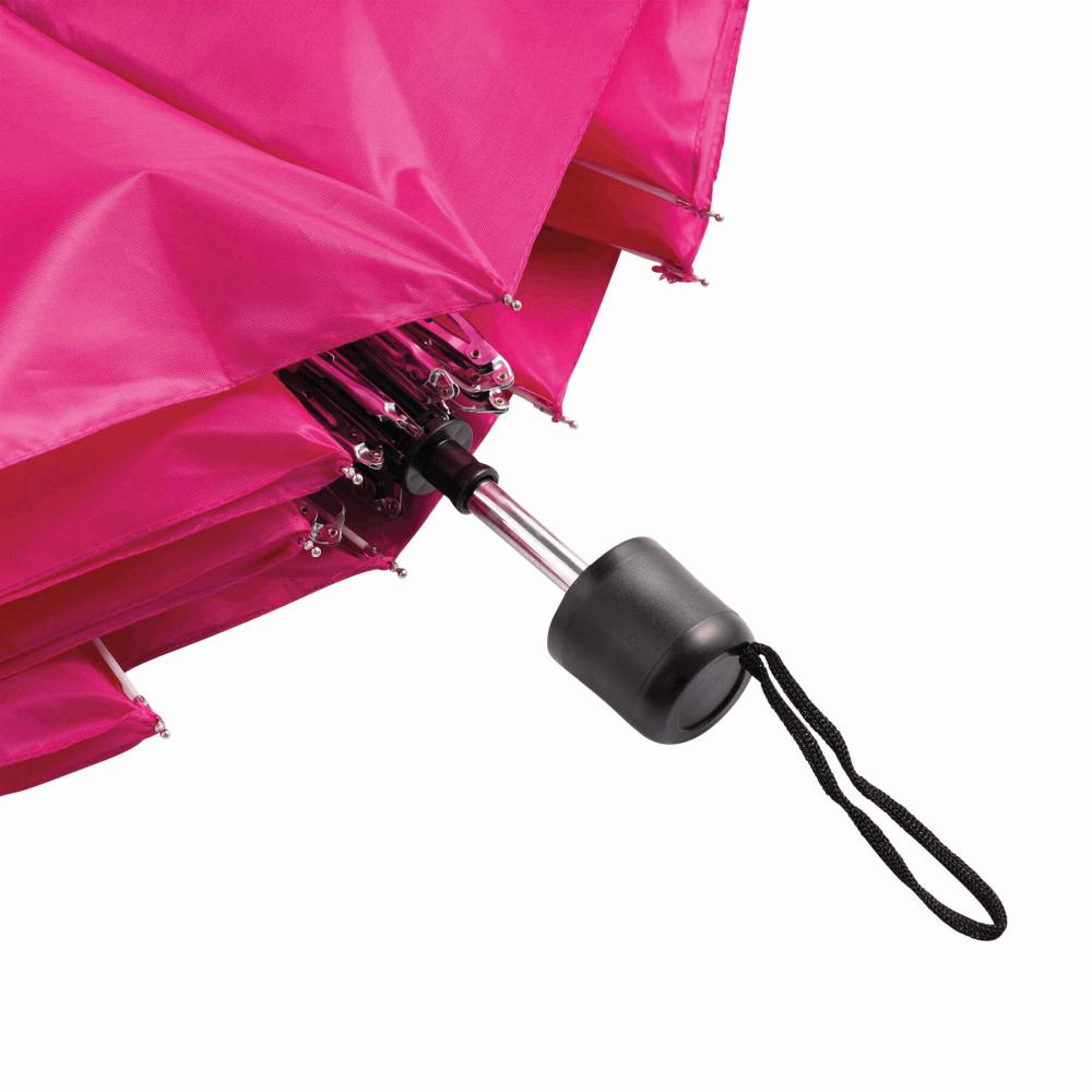 Карманный зонт PICOBELLO с трехкомпонентным металлическим стержнем, металлическими ребрами жесткости, черной пластиковой ручкой и капюшоном из полиэстера, застежка на липучку.