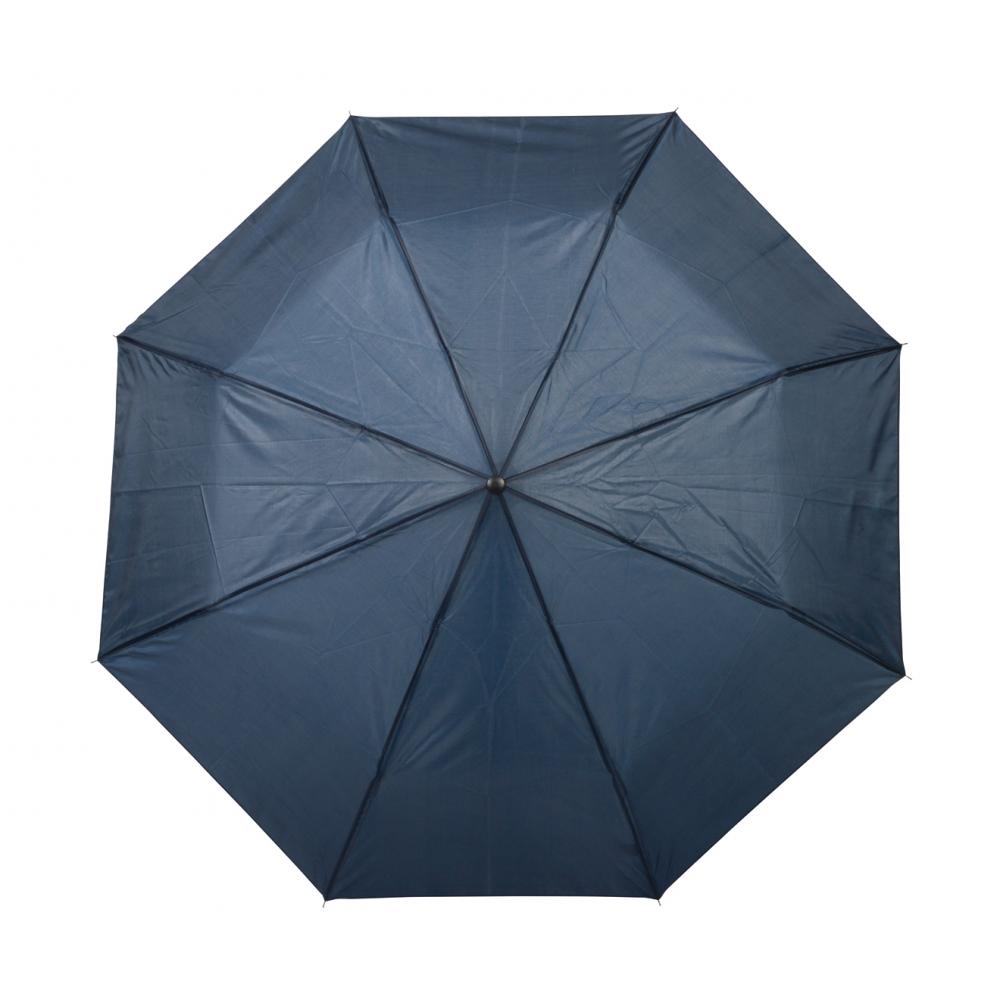 Карманный зонт PICOBELLO с трехкомпонентным металлическим стержнем, металлическими ребрами жесткости, черной пластиковой ручкой и капюшоном из полиэстера, застежка на липучку.