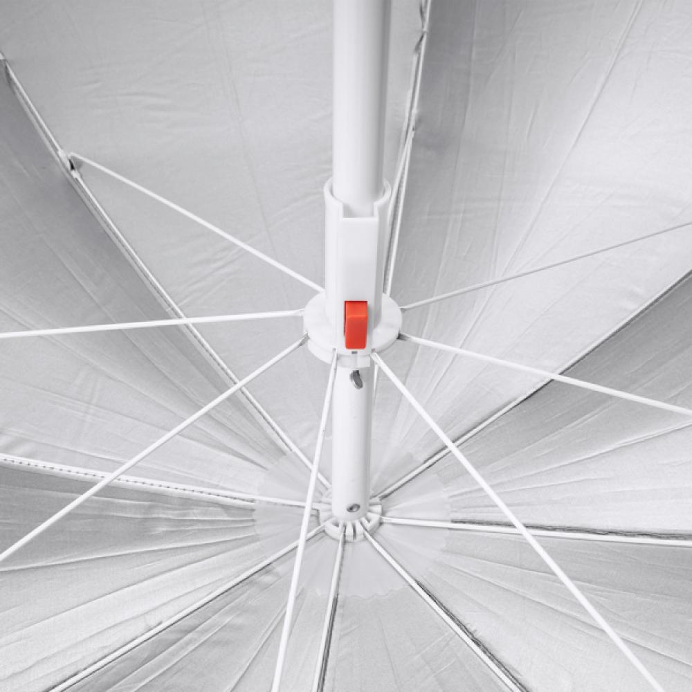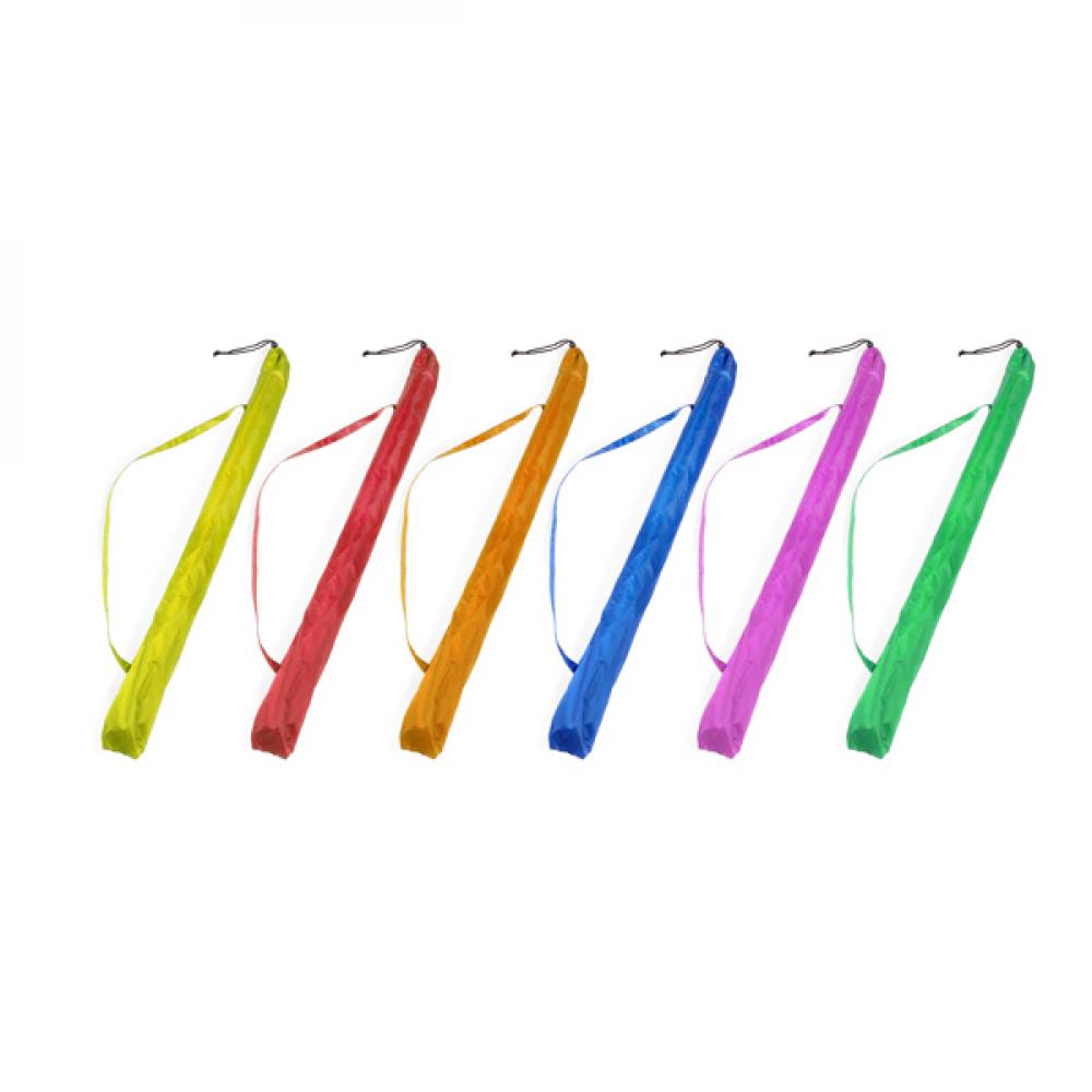 Пляжный зонт из прочного нейлона с 8 панелями, доступный в различных цветах. Регулируемый стержень и ребра белого цвета. Двойная строчка на клапанах. В комплекте сумка с плечевым ремнем.