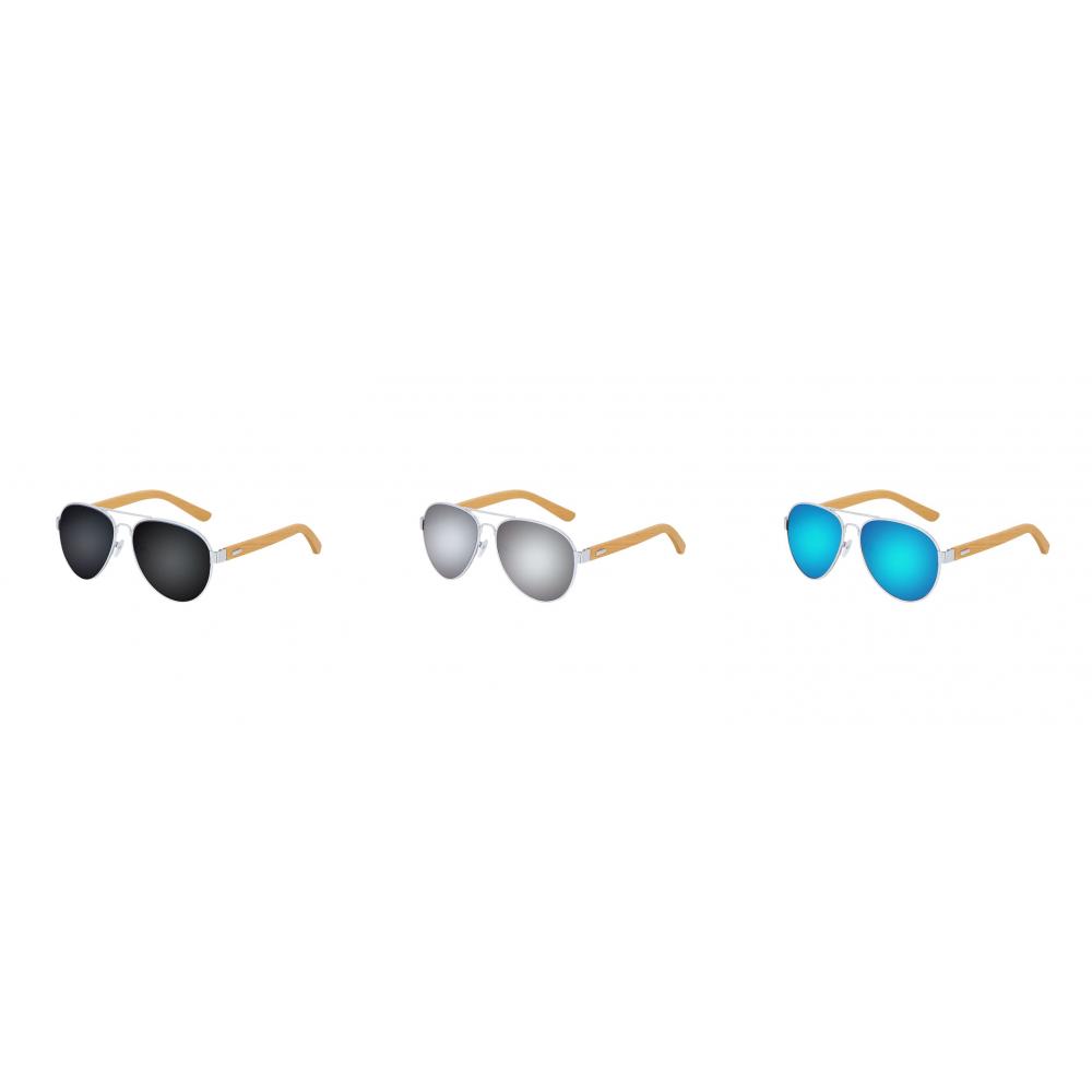 Солнцезащитные очки с защитой от УФ-лучей 400. С натуральными бамбуковыми дужками и прочной металлической оправой. Линзы с зеркальным покрытием и защитой от УФ-лучей 400. Поставляются в индивидуальном футляре. Материалы, такие как бамбук, способствуют использованию натуральных сырьевых материалов, снижая выбросы загрязняющих веществ. Бамбук - это очень прочное и универсальное растение, быстро растущее и обладающее способностью к регенерации, что делает его отличной альтернативой традиционному дереву.