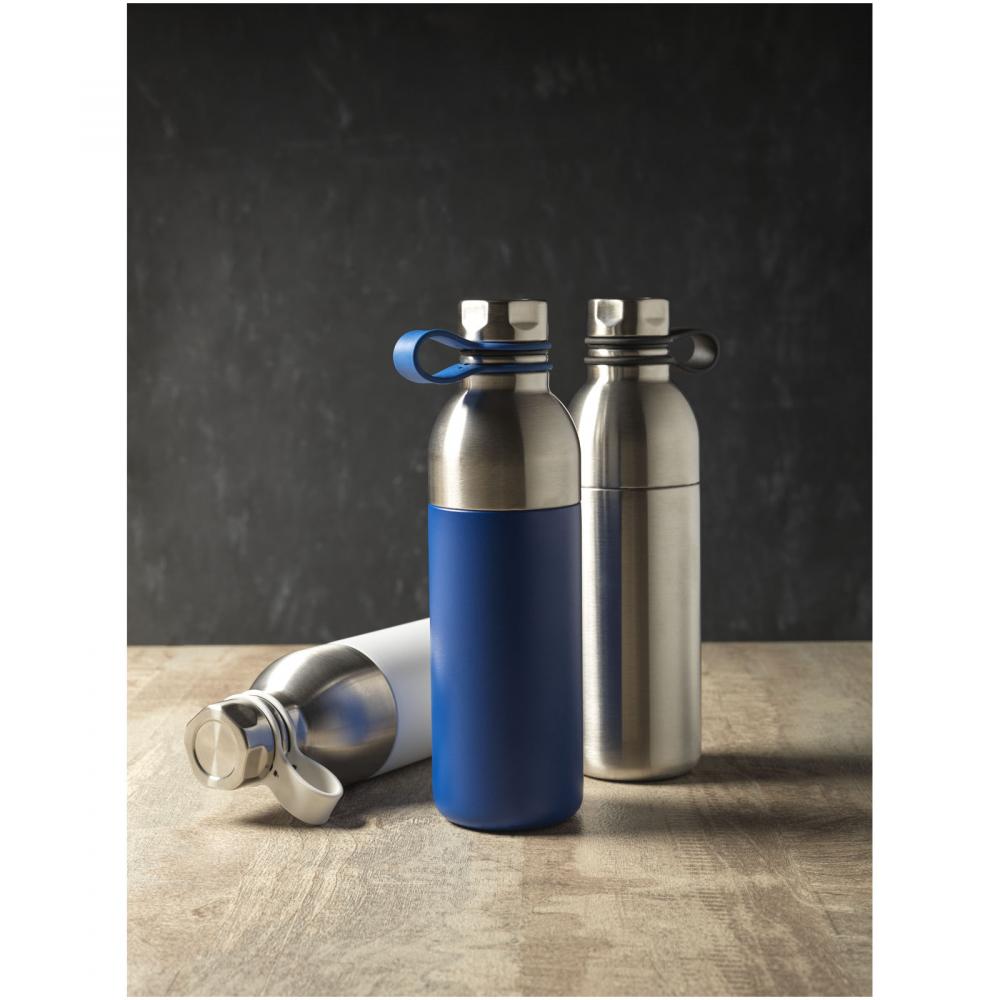 Двустенная вакуумная конструкция из нержавеющей стали с медной изоляцией, которая позволяет напиткам оставаться холодными в течение 48 часов или горячими не менее 12 часов. Конструкция также предотвращает образование конденсата на внешней стороне бутылки. Оснащена завинчивающейся крышкой и крышкой из нержавеющей стали с удобной силиконовой петлей для переноски. Двойное отверстие для легкой очистки и наполнения. Объем 590 мл. Поставляется в подарочной коробке Avenue.