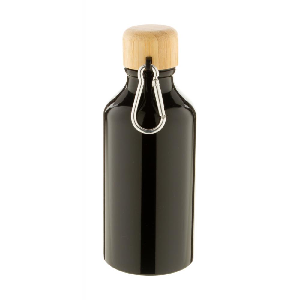 Алюминиевая спортивная бутылка с бамбуковой крышкой и карабином, 400 мл.