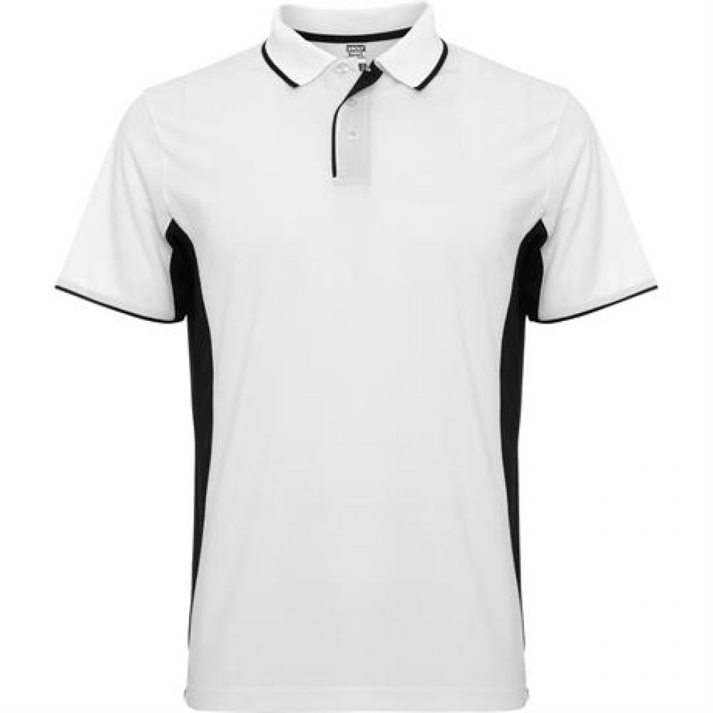 Спортивная футболка поло с короткими рукавами, специально предназначенная для занятий спортом. С сочетанием двух цветов. Воротник с застежкой на пуговицы, закрытыми швами и контрастной планкой. Дышащая ткань, легко стирается и быстро сохнет. *Съемная этик